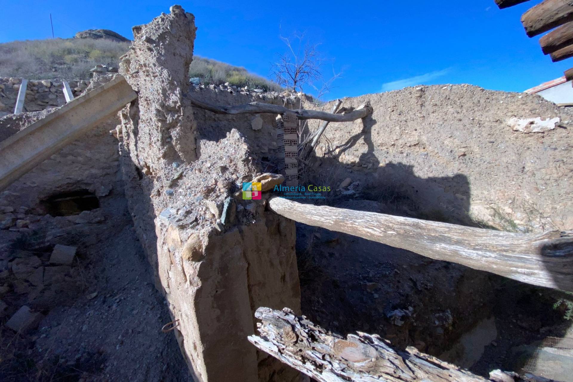 Die Zufahrt erfolgt über eine ?€?Rambla?€? (Gleisstraße). Die Straße zum Grundstück ist steil und muss befahrbar gemacht werden. Das Anwesen ist reformbedürftig. Es hat 5 Schlafzimmer und einige Höhlenräume.