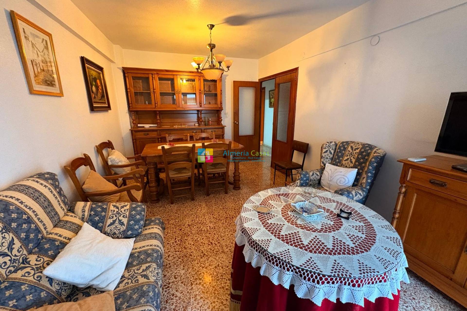 Das Wohn-Esszimmer ist sehr großzügig geschnitten und erhält viel Tageslicht, mit Zugang zu einem großen Balkon, der zur Hauptstraße ausgerichtet ist. Die Küche ist ebenfalls sehr geräumig, komplett möbliert und mit allen notwendigen Elektrogeräten ausgestattet. Zudem gibt es eine separate Galerie, ideal als Waschraum.