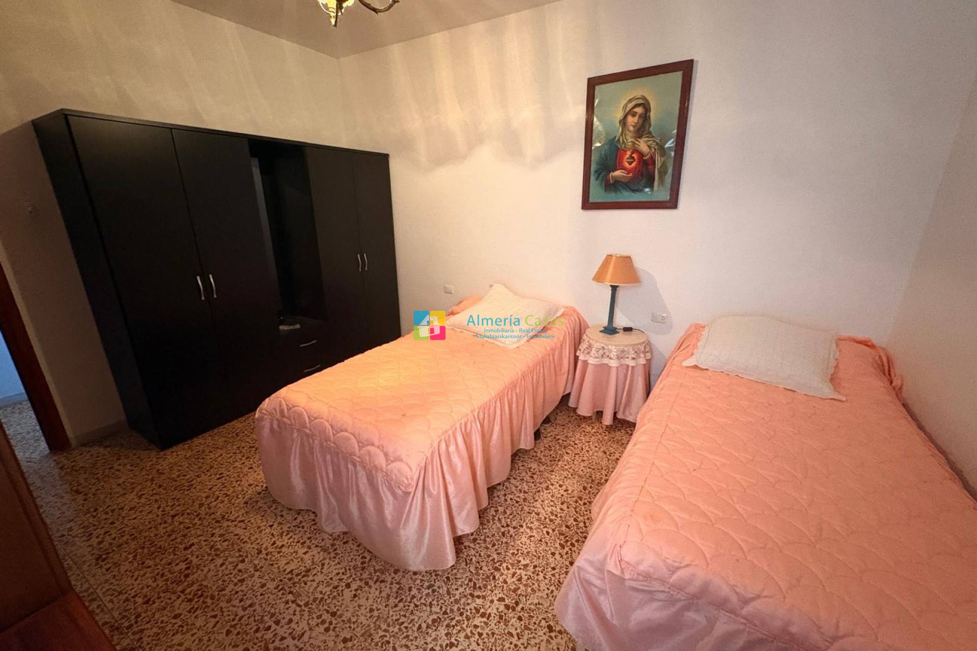 Beim Betreten führt ein L-förmiger Flur zu allen Räumen. Die Wohnung verfügt über ein geräumiges Badezimmer mit ebenerdiger Dusche sowie drei Doppelzimmer: zwei davon mit Blick auf den Innenhof und dennoch sehr hell, und ein drittes mit Blick auf die Straße.