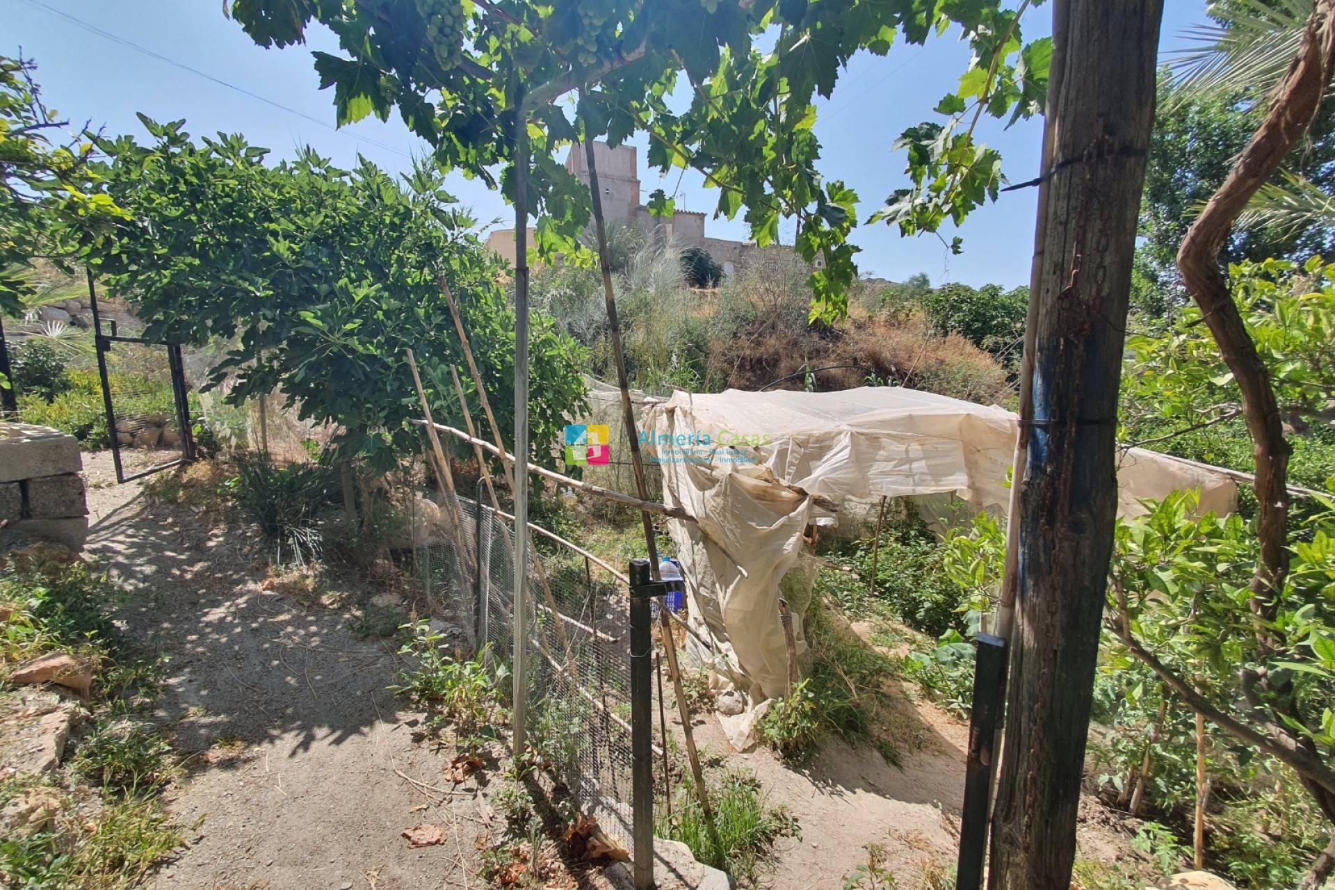 Die vordere Terrasse ist mit schönen Weinreben bedeckt, die dem Anwesen Schatten spenden. Das Grundstück ist komplett eingezäunt und hat Tore, um von der Straße aus auf die vordere Terrasse zu gelangen. An der Seite des Grundstücks hat der Garten mehrere Obstbäume und wurde als Gemüsegarten genutzt, er hat auch Tiergehege, die derzeit zur Haltung einiger Hühner genutzt werden.