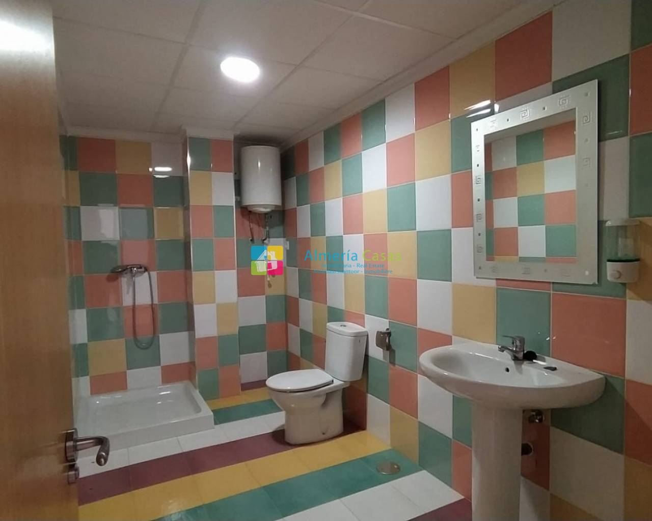 Al entrar tiene un amplio recibidor con un mostrador con puertas para guardar objetos, un pasillo da acceso a las siguientes habitaciones que son: una habitación antes usada como despacho a la derecha del pasillo al que le sigue un precioso cuarto de baño completo que ha sido elegido muy cuidadosamente, al final del pasillo se encuentra un almacén y a mano izquierda se haya otra habitación bastante amplia en la que se encuentran todas las conexiones para poder instalar una cocina.