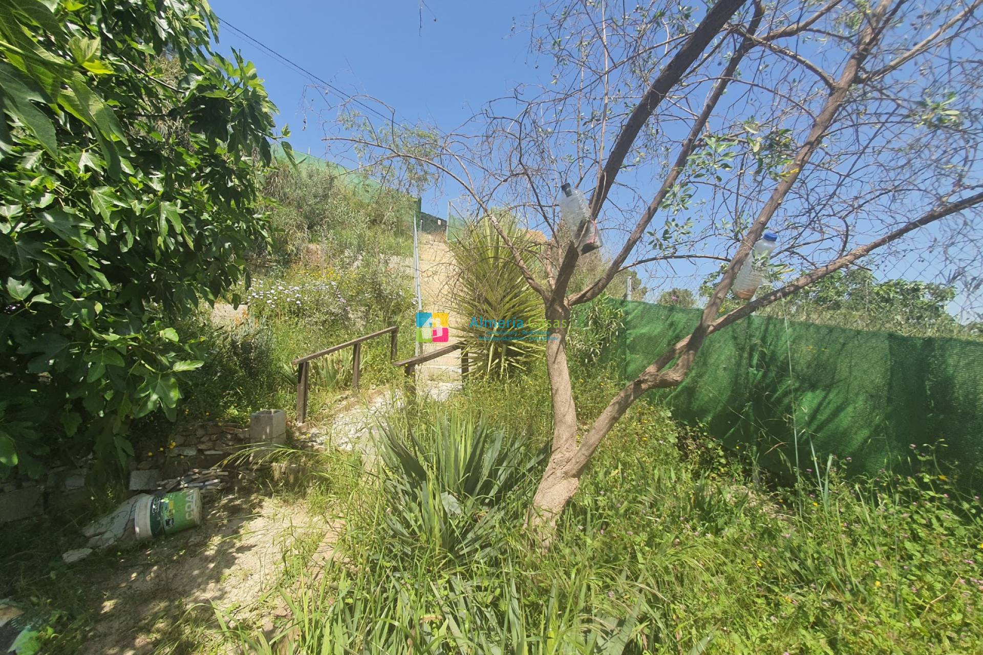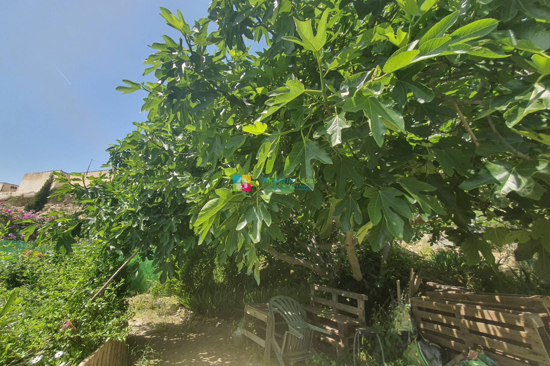 Desde el lavadero se abre una puerta a una terraza trasera y un camino que baja al área del jardín que está plantada con varios árboles frutales, melocotones, peras, manzanas, almendras, nueces, etc. También hay un cobertizo que es muy útil para el almacenamiento.