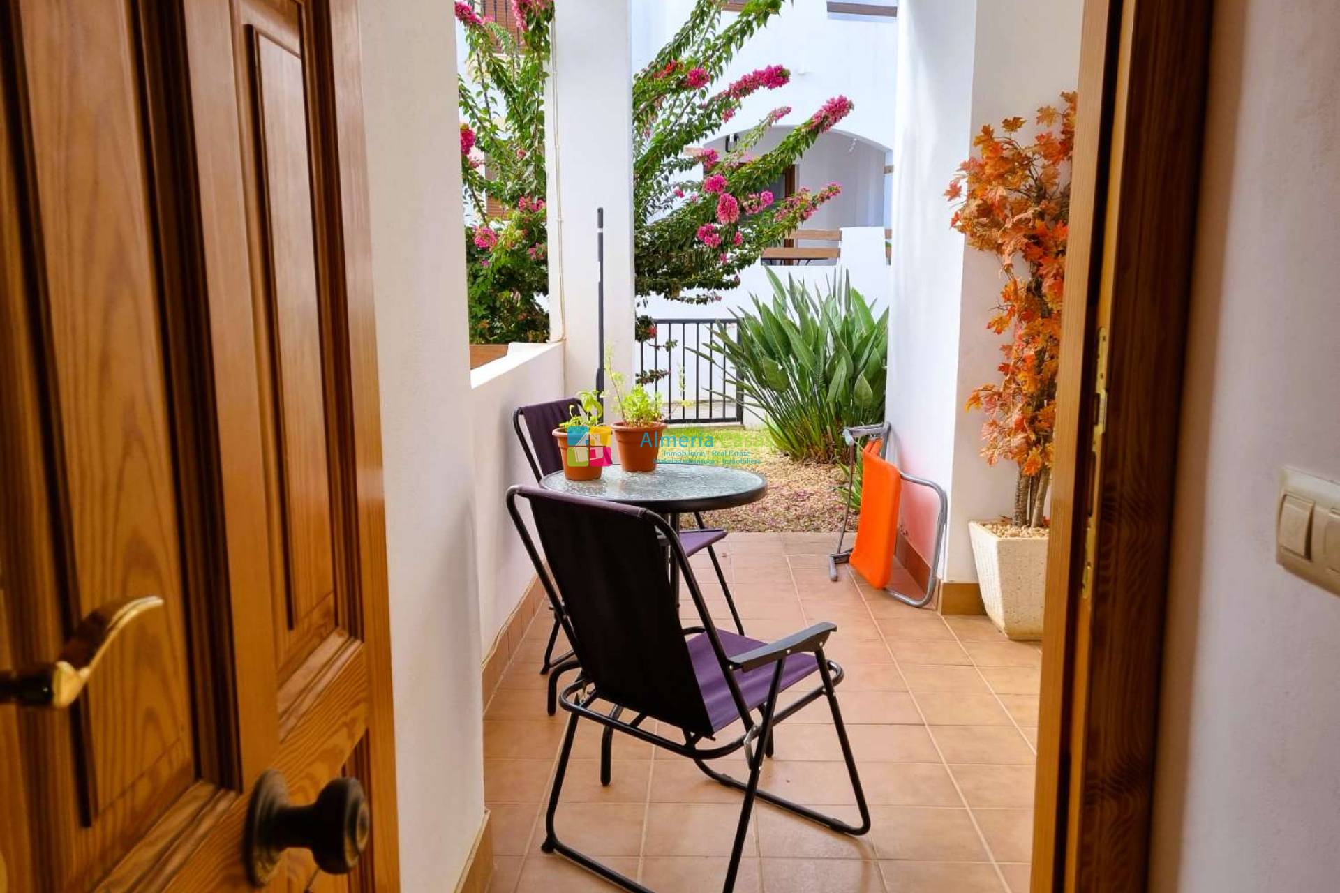 El apartamento cuenta con una zona de jardín en la entrada a la puerta principal
