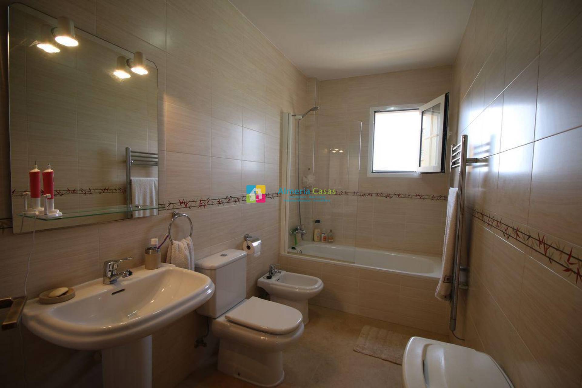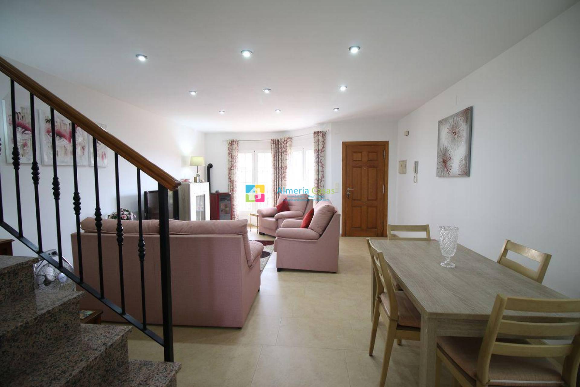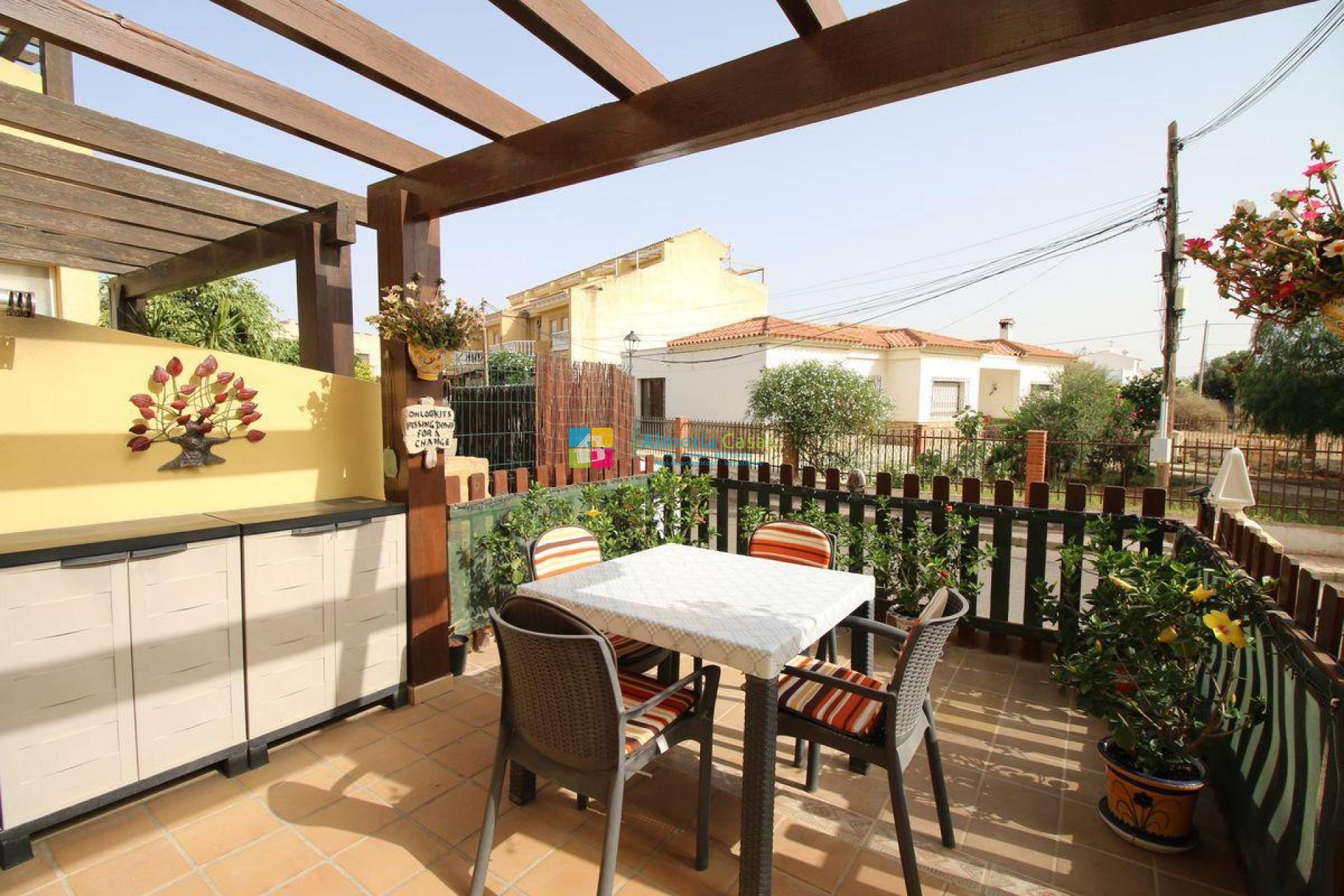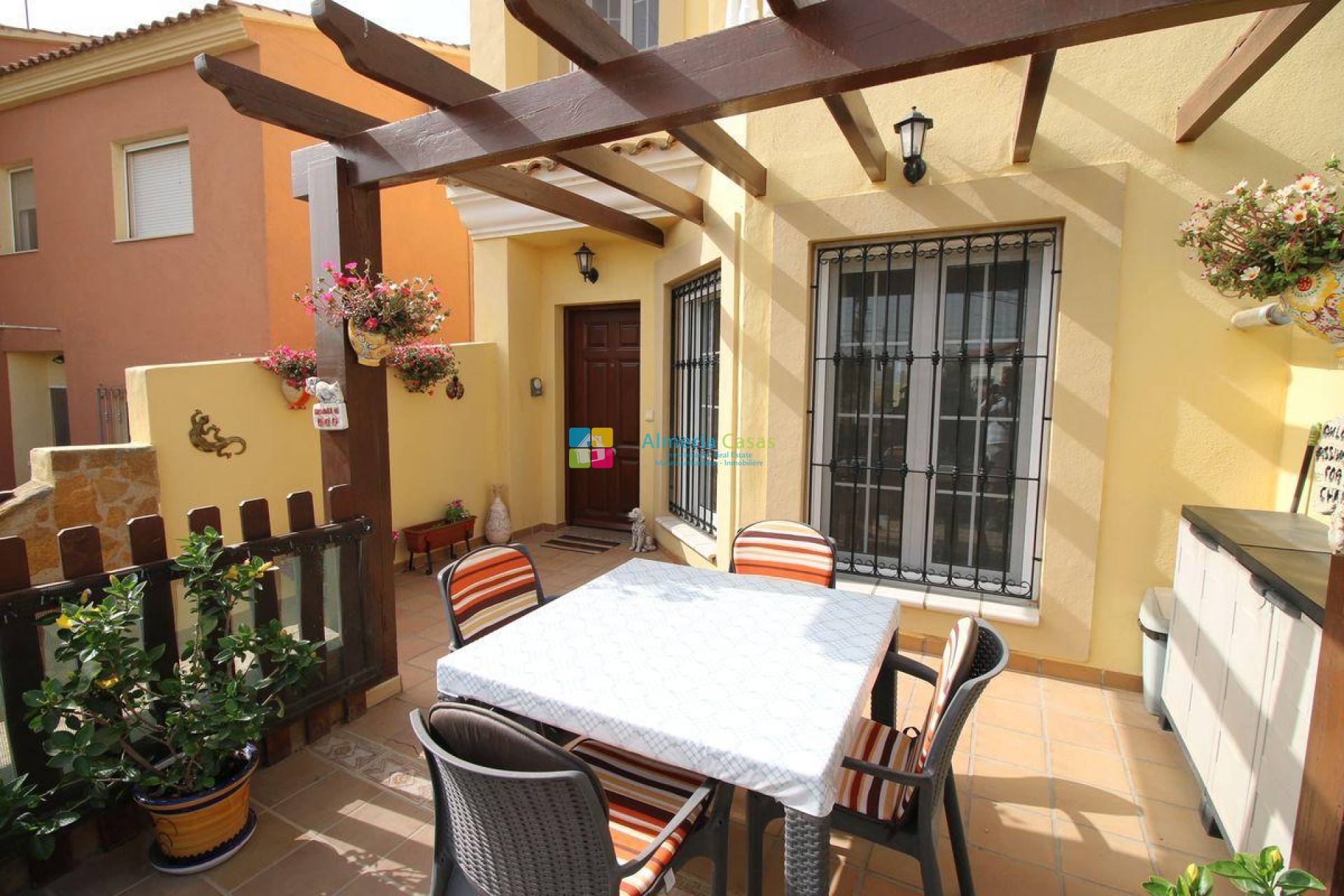 - Planta baja: accederemos desde acceso independiente desde la calle y dando este a terraza solada, accedemos a la casa directamente a amplio salón también este dando a Baño completo, cocina totalmente equipada con despensa y dando acceso a terraza trasera con toldo y zona para lavadora.