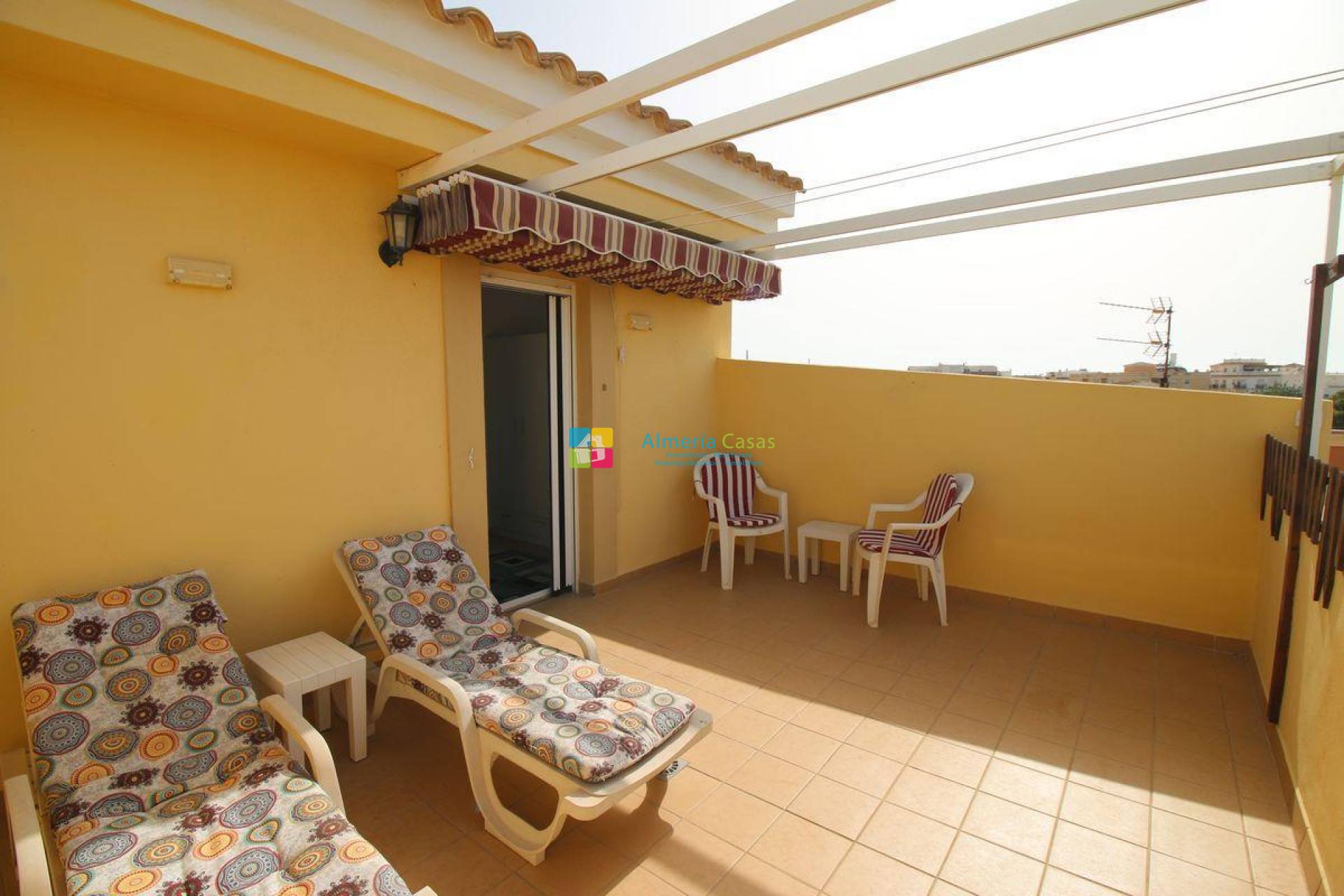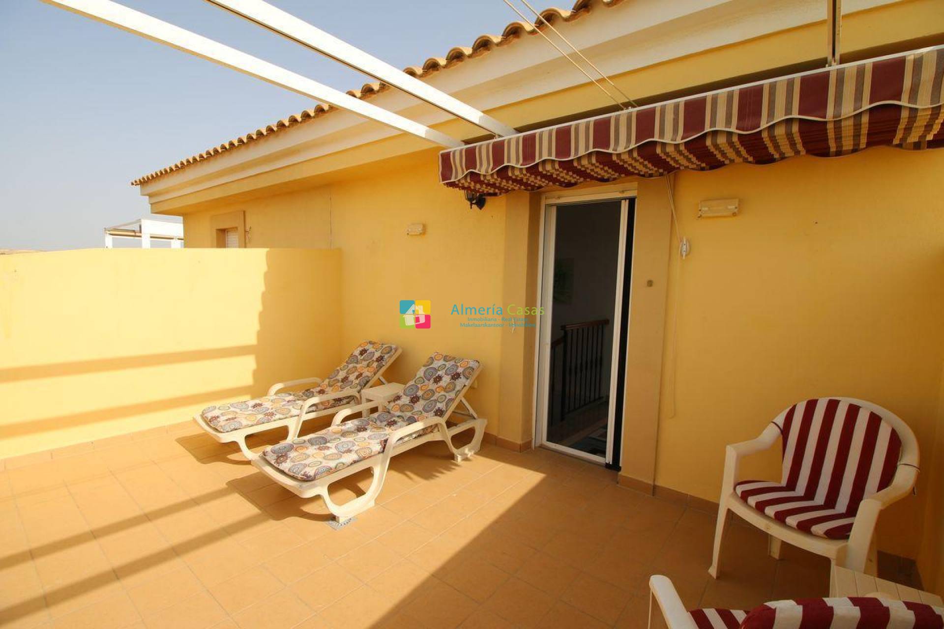 - 2ª planta encontraremos 2 terrazas una de ellas al sur oeste y otra al noreste, una de ellas tiene toldo y tumbonas