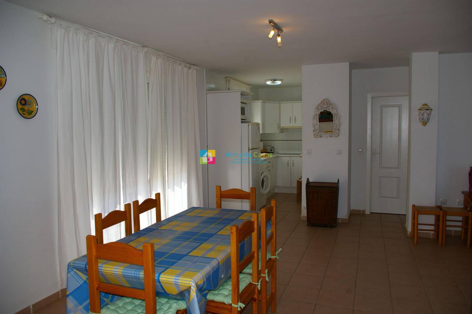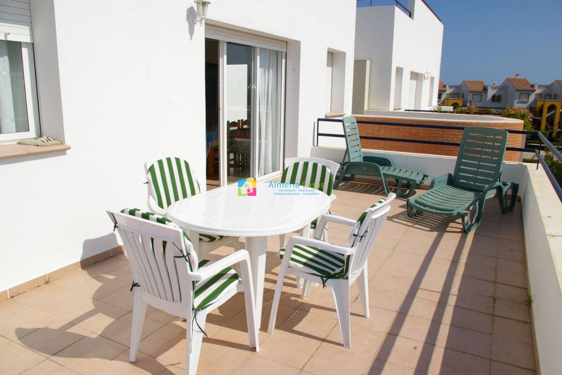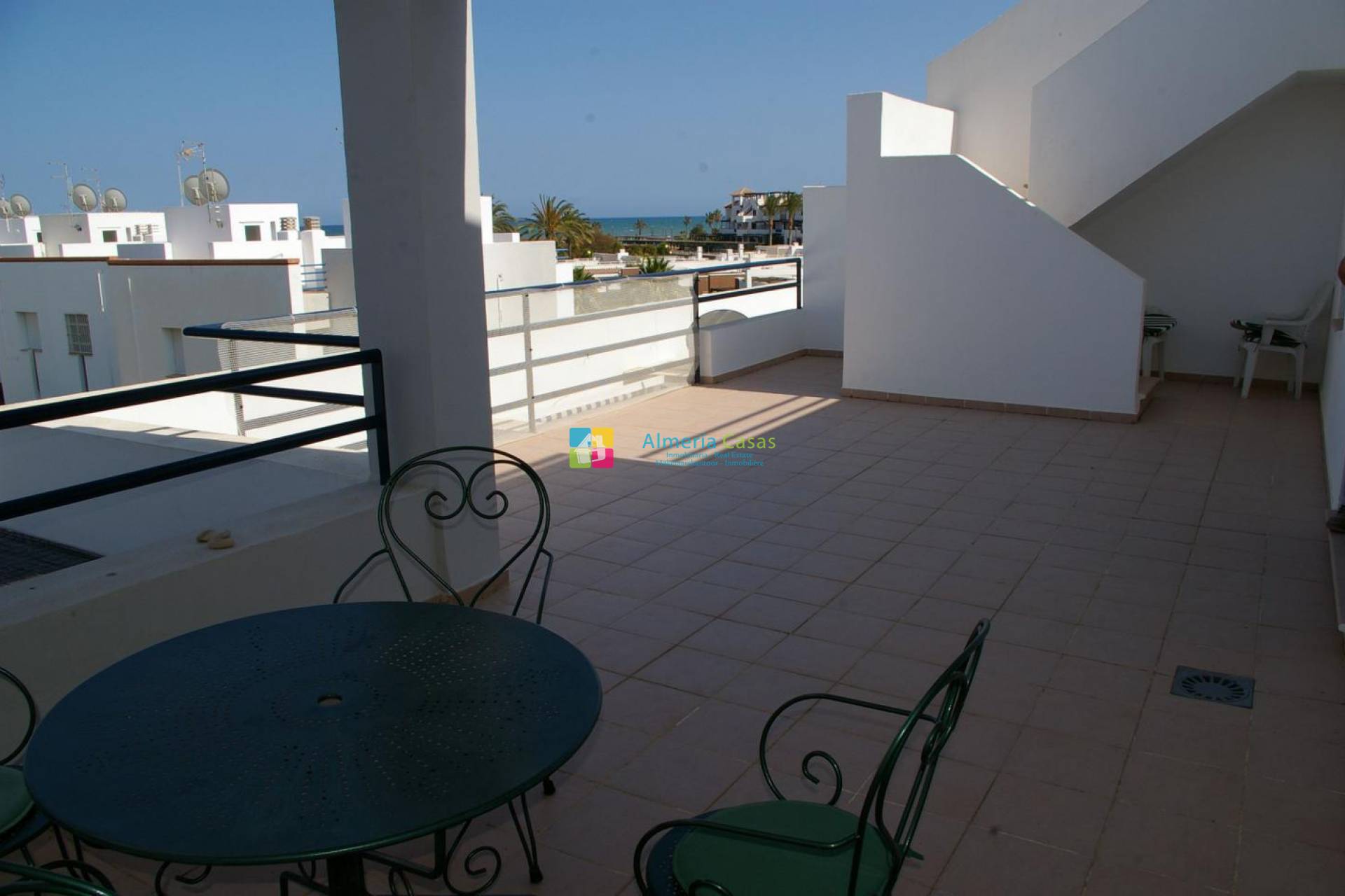 Estupendo ático situado en urbanización Playa de Baría 1 situada en 1ª línea de playa, esta urbanización cuenta con el 30% construido el 70% son jardines y zonas de paso, consta de 2 zonas de piscina con varias piscinas, zonas de césped, acceso directo al mar, etc. El apartamento se compone por salón comedor muy amplio, cocina totalmente equipada, 2 dormitorios dobles con armarios empotrados, ventiladores en todas las habitaciones incluido salón; Terraza para mañana amplia y terraza de tarde de mas de 50 m2, las dos terrazas están provistas de mesas y sillas, además de hamacas. Incluye un estupendo solárium de 70m2.