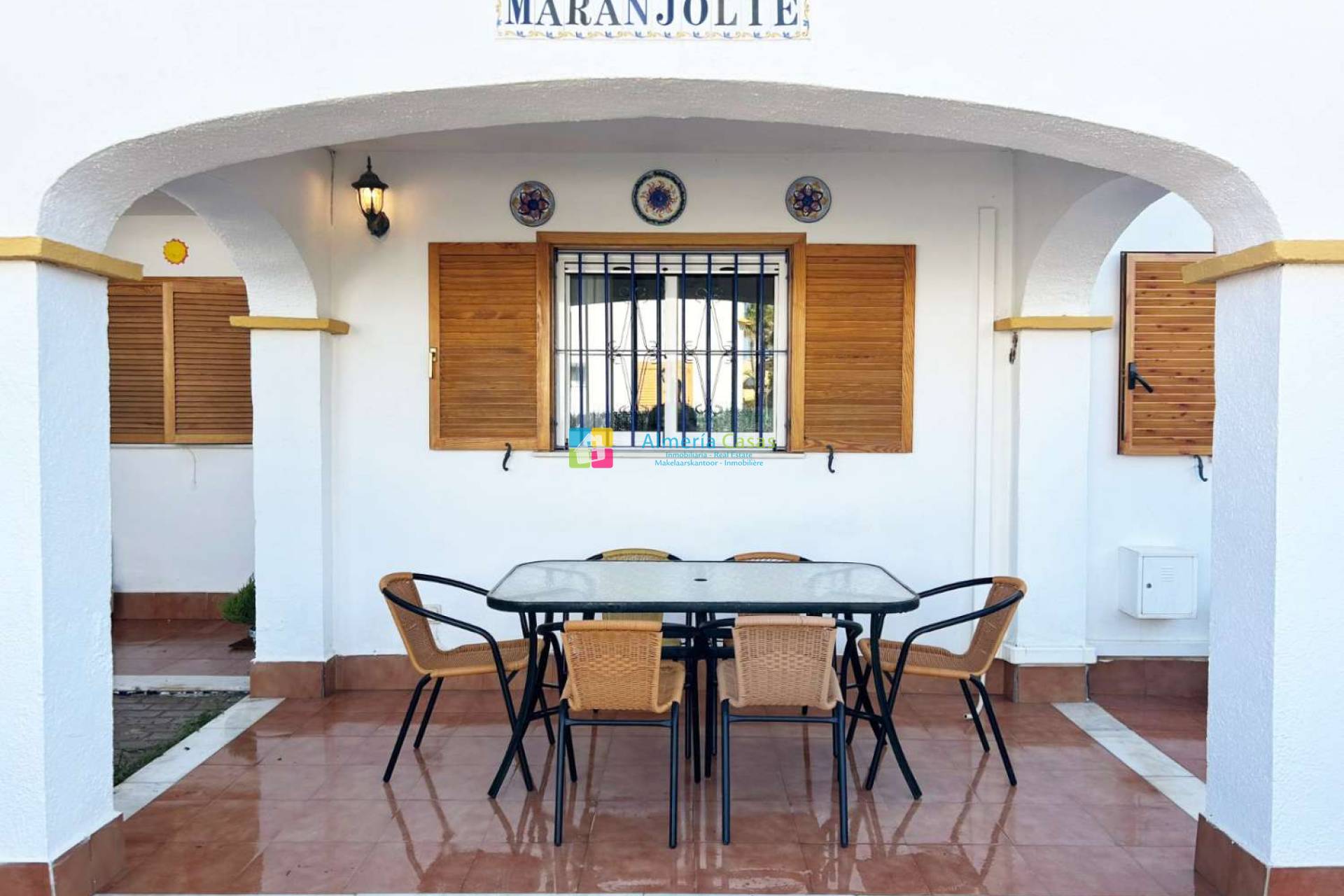 Terraza con parte techada y parte descubierta con mobiliario de terraza