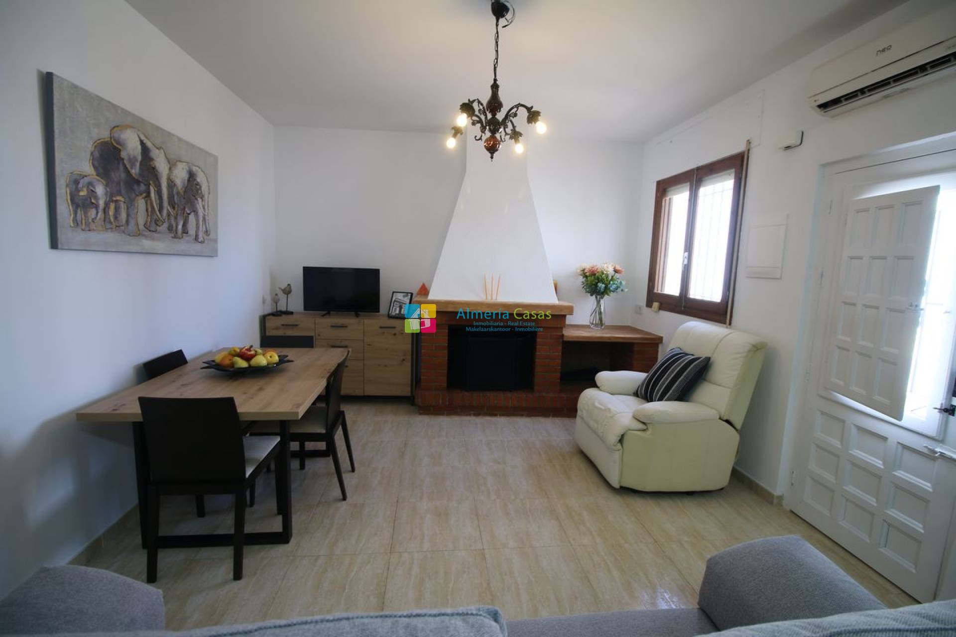 La casa se compone por acceso mediante terraza a salón comedor amplio con chimenea y cocina completa.