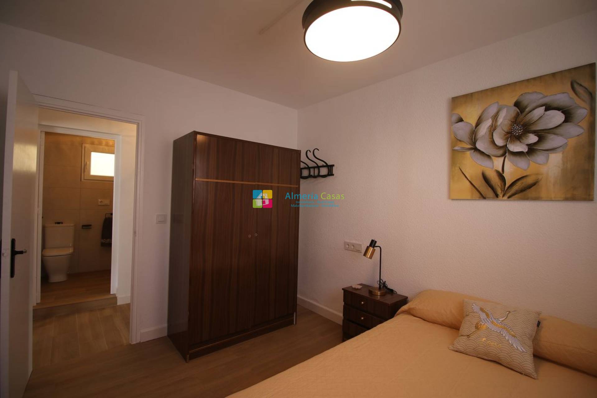 Continuamos con acceso a pasillo dando lugar a dormitorio principal, baño con ducha, continuamos con dormitorio secundario y espacio de descanso dando lugar a garaje.