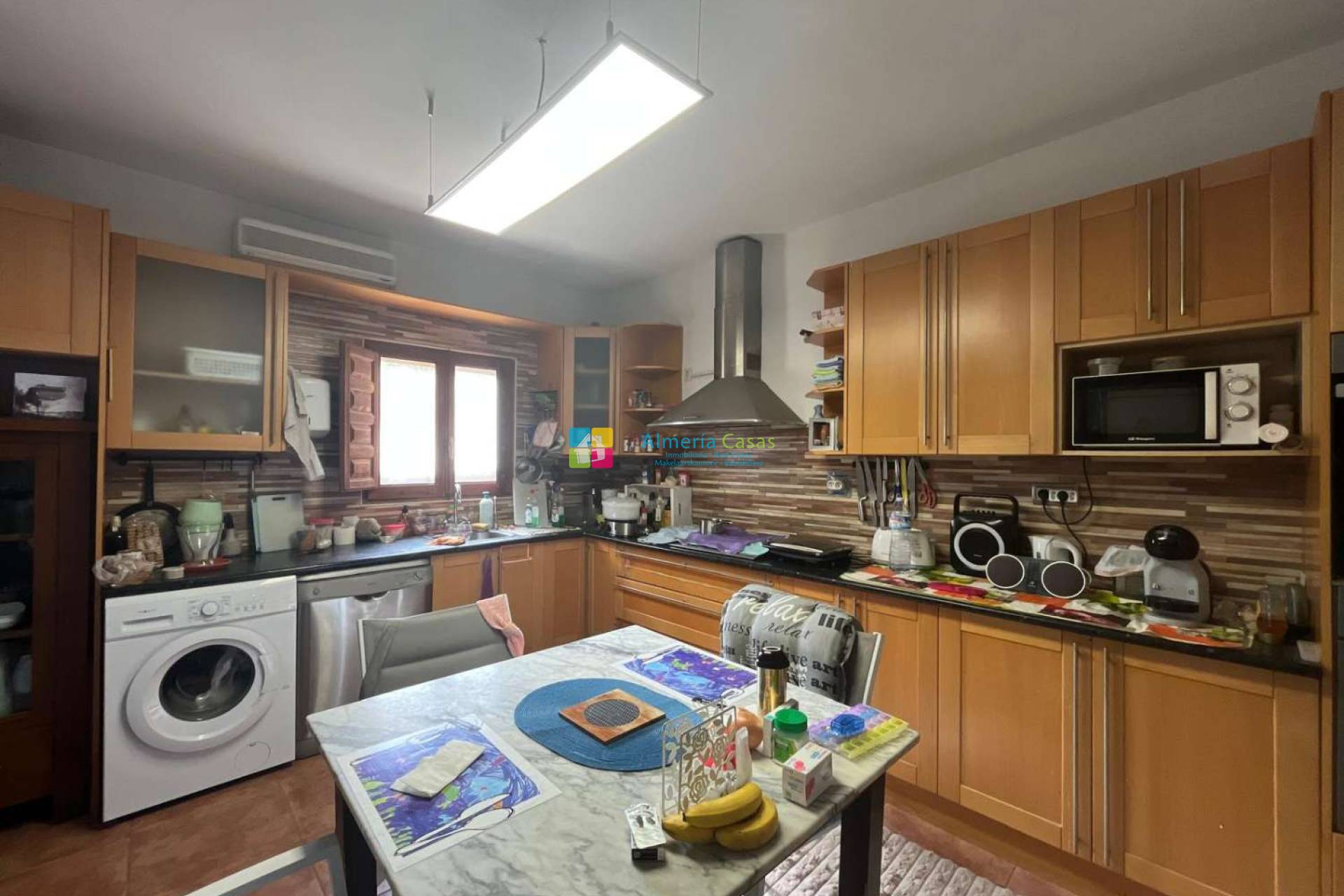 Entre sus instalaciones destacan la piscina, jardines, zona de huerto con árboles frutales, trastero, pérgola para coches, calefacción y aire acondicionado centralizado, agua de regadío y agua de galasa. La propiedad se vende amueblada y está en buena conservación, lista para entrar a vivir.
