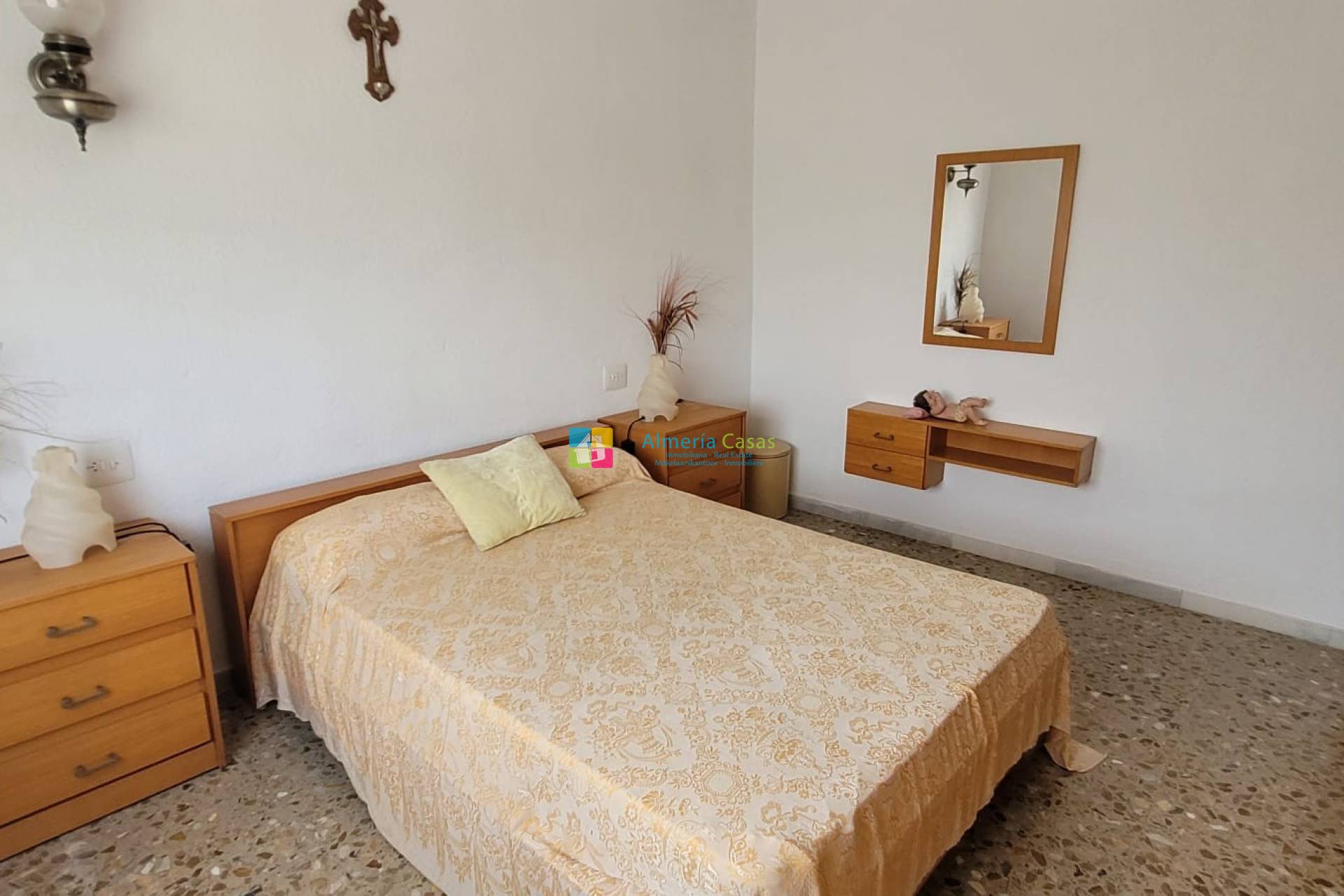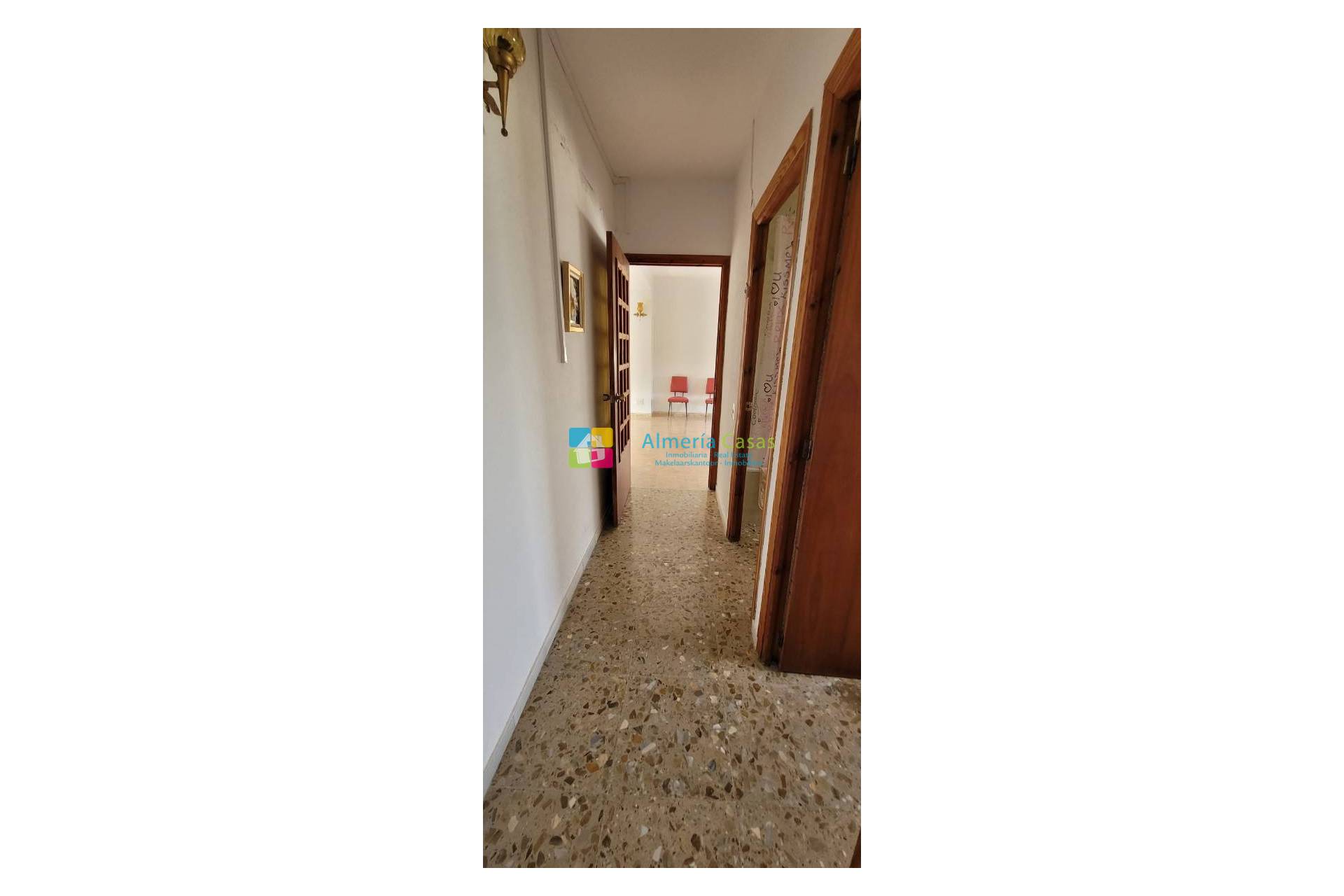 Esta primera planta cuenta con un luminoso salón comedor con cocina abierta y barra. Desde el salón hay unas fantásticas vistas al valle y al pueblo de Serón. Continuando por un pasillo, a la izquierda se encuentran: un baño completo, una despensa de buen tamaño y, al fondo, un dormitorio doble. Volviendo a la sala de estar y pasando la cocina, una puerta conduce a un segundo dormitorio y de allí a una gran sala que actualmente se utiliza como tercer dormitorio.