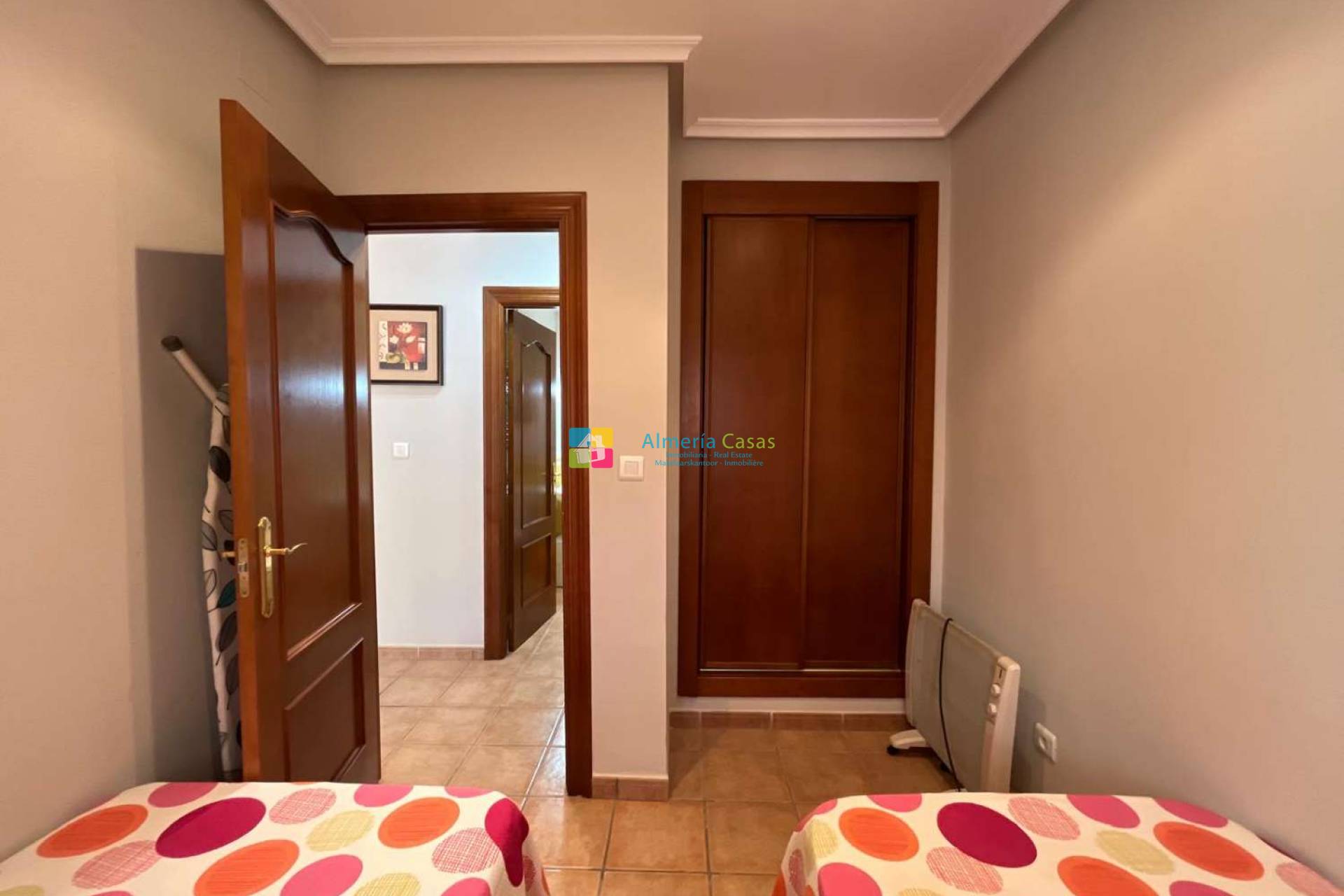 Estupendo apartamento situado en la urbanización Al Andaluss Thalassa en Vera playa. Apartamento situado en primera planta. Se compone por 2 dormitorios dobles, 2 baños, salón comedor, cocina independiente y equipada. Aire acondicionado y calefacción . Parking Orientación Suroeste Piscina climatizada con yacuzzi, gym, sauna, baño turco. 2 piscinas exteriores 2 pistas de padel 1 pista de tenis. Conserje durante el día. Zonas ajardinadas y fuentes por toda la urbanización.
