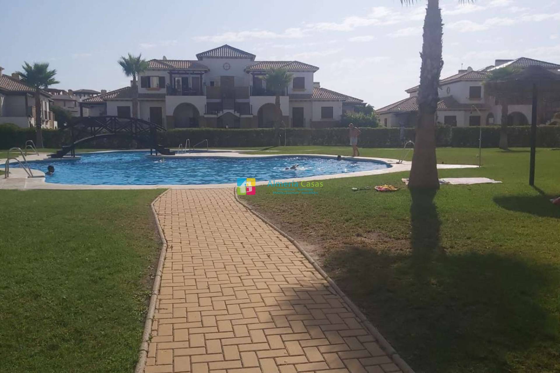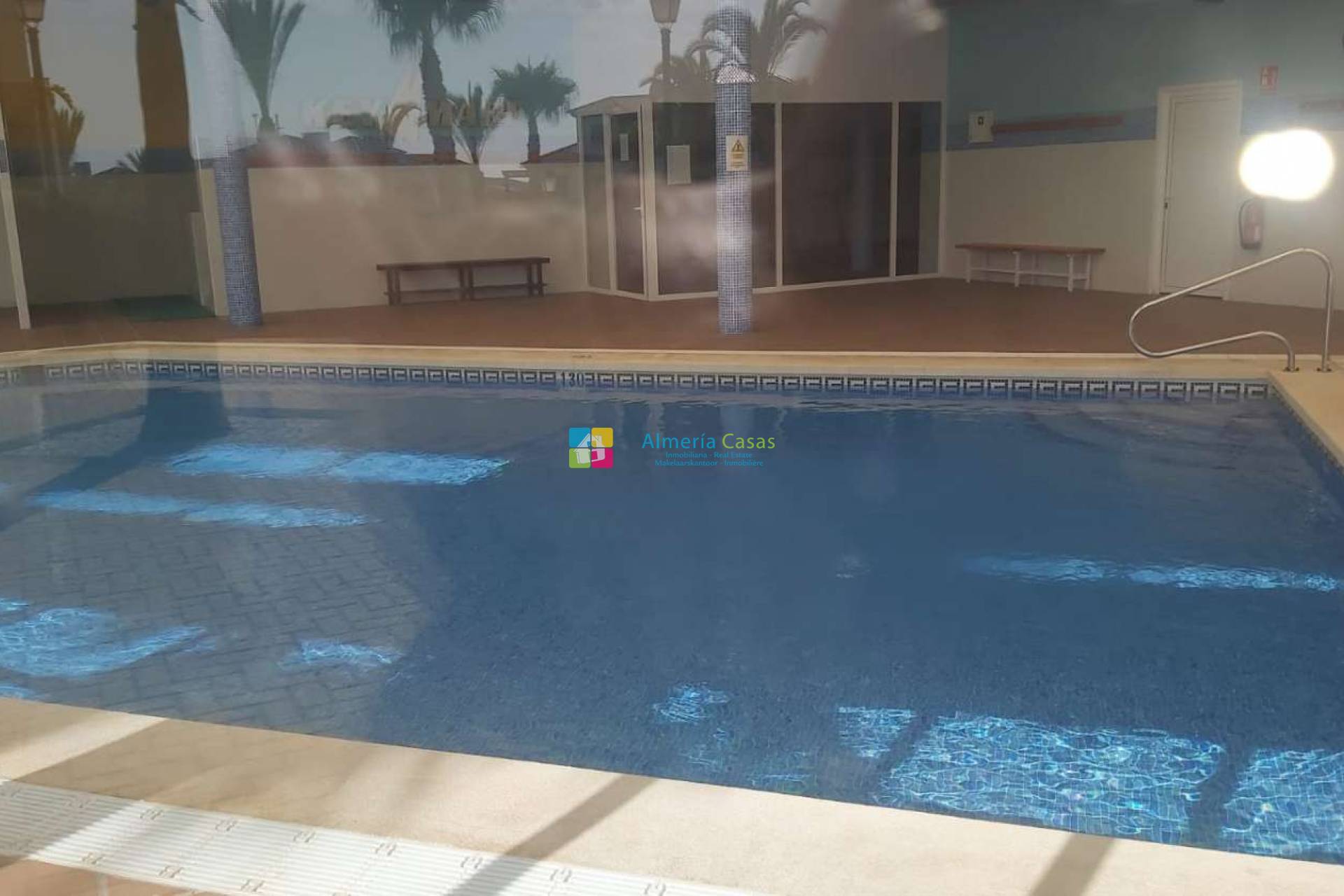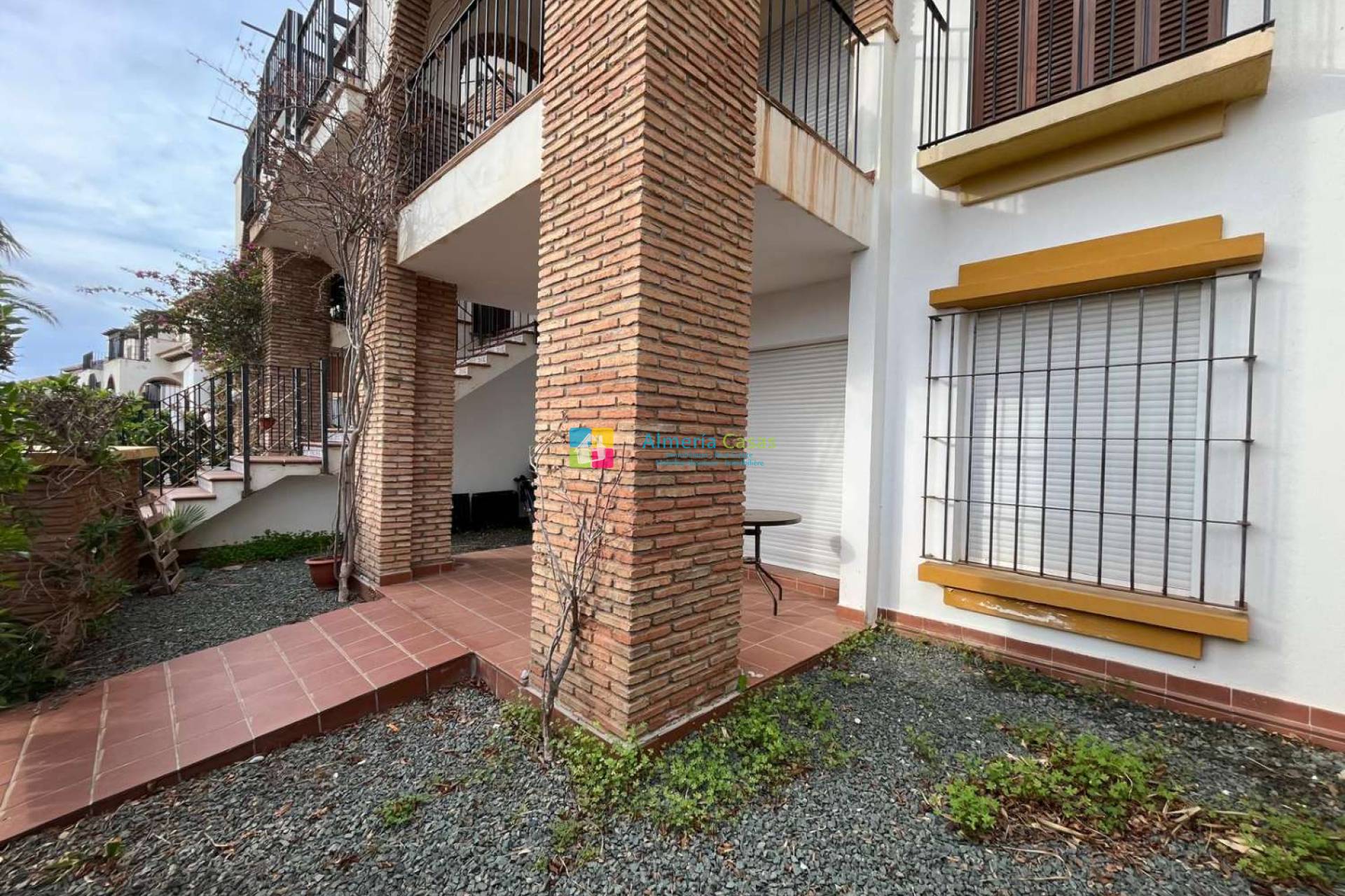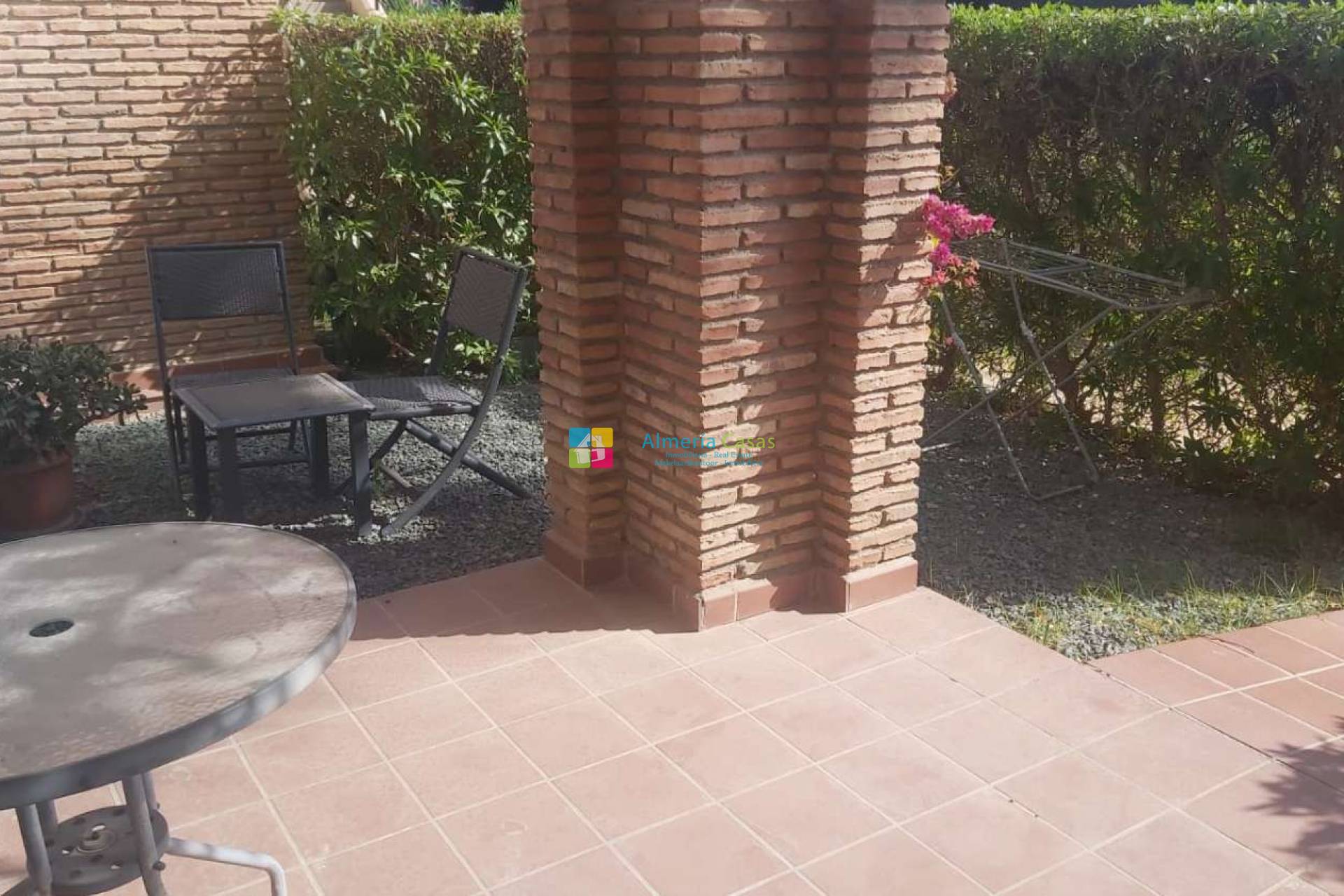 Estupendo apartamento situado en la urbanización Al Andaluss Thalassa. El apartamento se encuentra en planta baja con una estupenda terraza jardín con porche. Accedemos a salón comedor amplio dando acceso a: 2 dormitorios dobles con armarios empotrados 2 baños completos Cocina completa con acceso a patio Aire acondicionado en el salón Mobiliario incluido Aparcamiento La urbanización cuenta con 2 piscinas comunitarias exteriores, piscina climatizada, yacuzzi, sauna, baño turco, gym, 2 pistas de padel y pista de tenis Se encuentra a 2 km de la playa