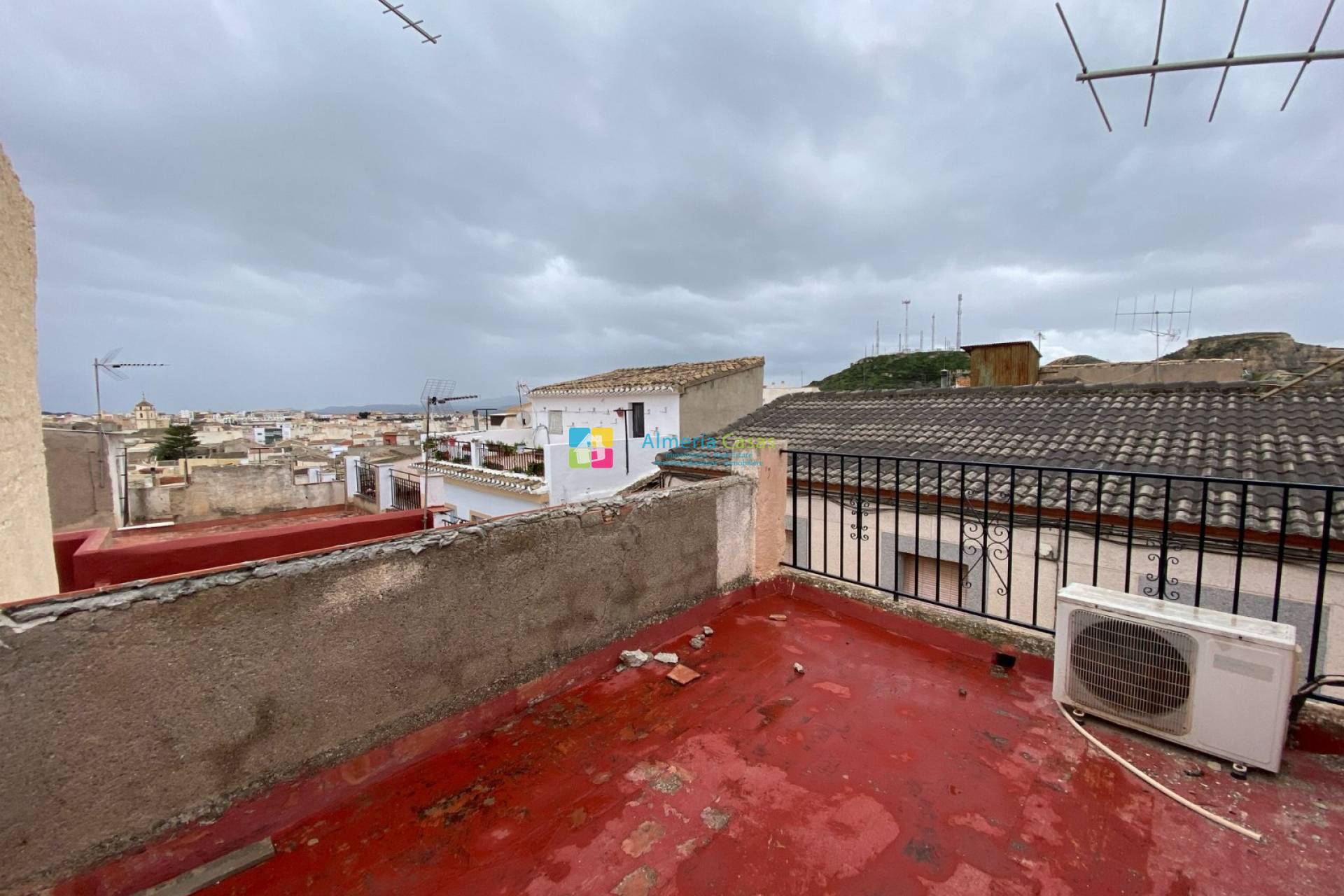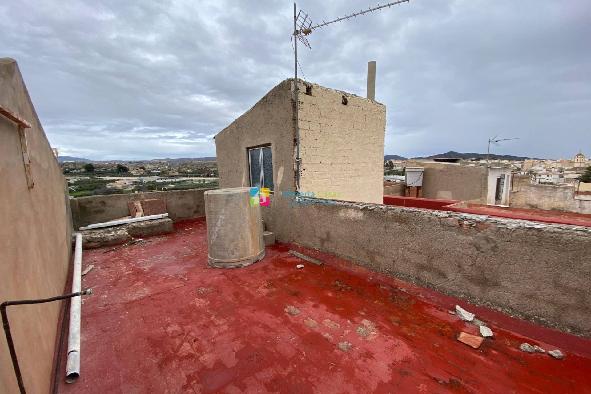 En entrant dans la propriété, vous trouverez le hall d'entrée. À gauche, vous trouverez une chambre simple. En face, vous trouverez le spacieux salon. De là, une porte mène à la cuisine/salle à manger entièrement équipée, à un petit patio abritant le chauffe-eau et à des toilettes au rez-de-chaussée. À l'étage, vous trouverez deux chambres doubles spacieuses, une autre chambre simple et une salle de douche. Un escalier extérieur en colimaçon mène à la terrasse sur le toit avec vue sur toute la ville d'Albox. Sur la terrasse sur le toit, vous trouverez également un débarras pratique.