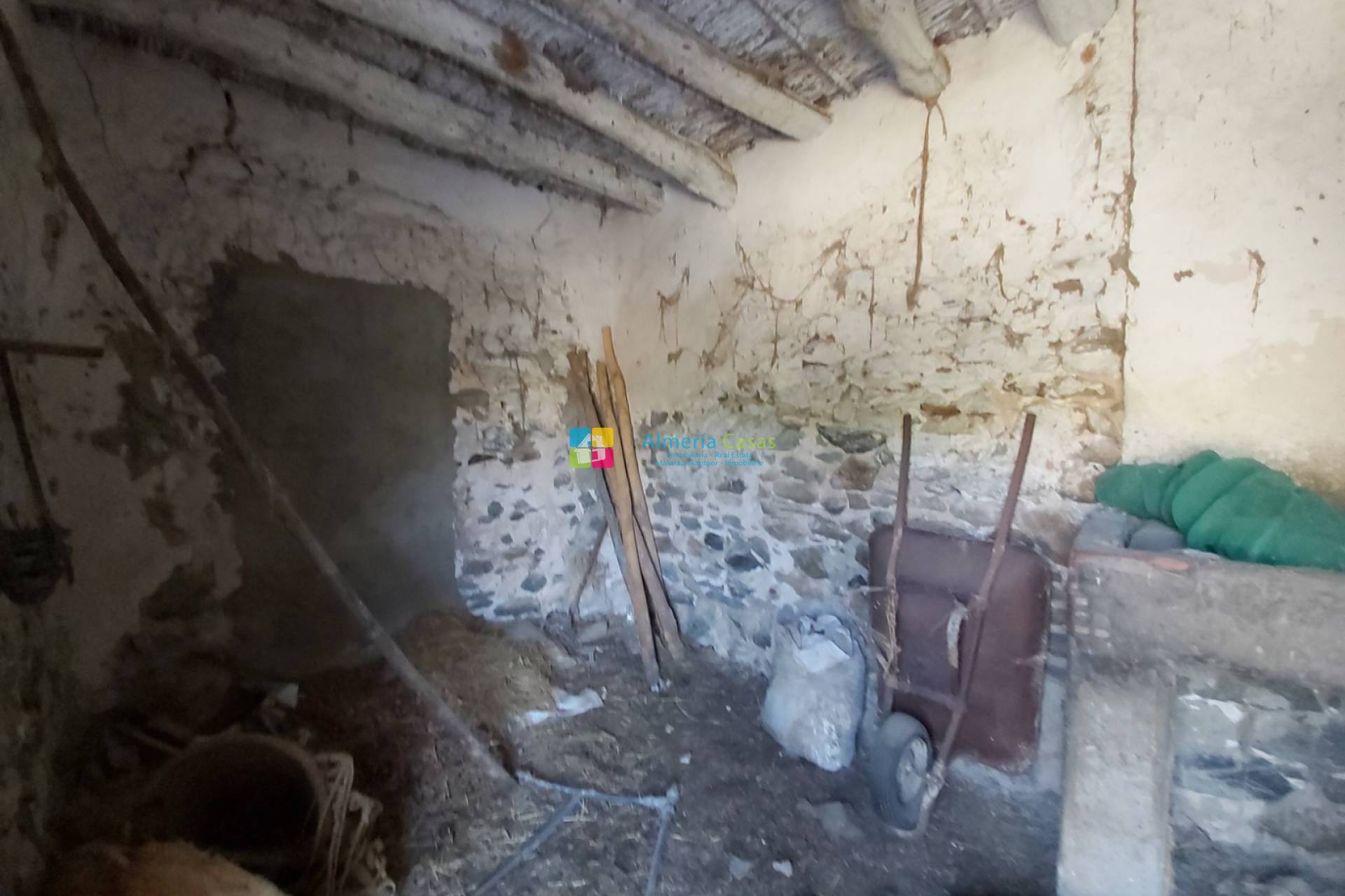 La maison a une façade authentique et la porte d'entrée s'ouvre sur une pièce avec cheminée, en plus il y a une autre pièce. Les escaliers mènent au premier étage où il y a deux grandes pièces qui peuvent être converties en plus d'espace de vie. La toiture de cette section a été rénovée. À côté de la maison, il y a une petite maison séparée qui servait autrefois d'espace de stockage, mais ce grand espace peut également être converti en plus d'espace de vie.