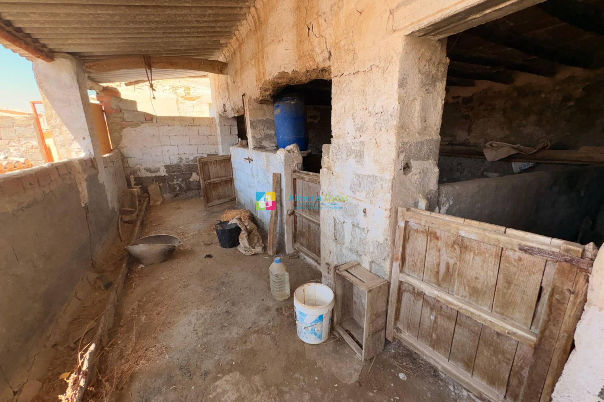 À l’arrière de la maison se trouvent les anciens enclos, un espace plein de charme à rénover selon vos envies – idéal pour créer un jardin, une terrasse ou des pièces supplémentaires.