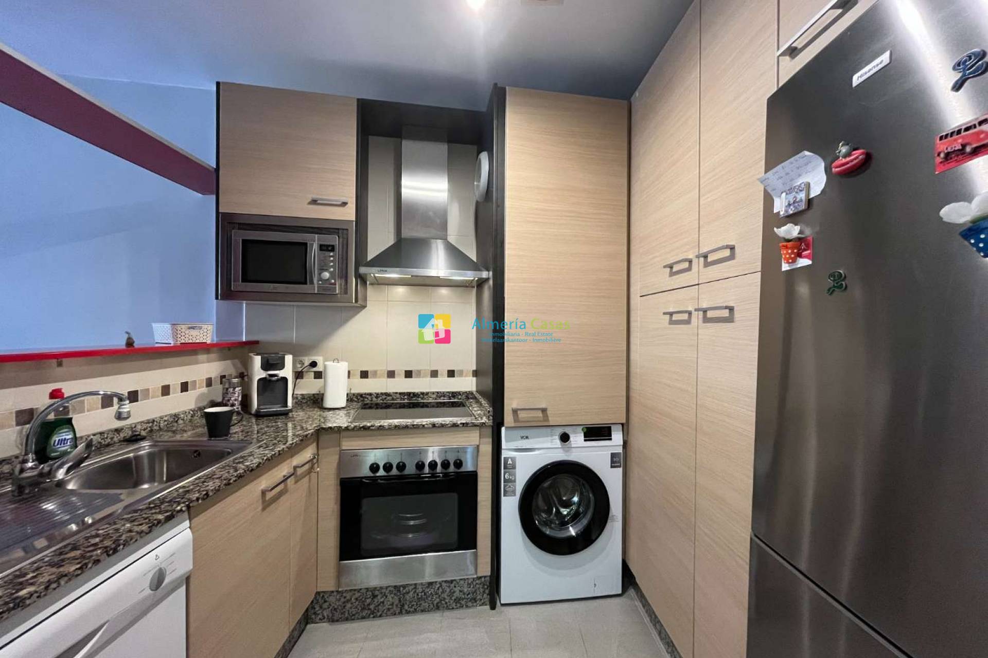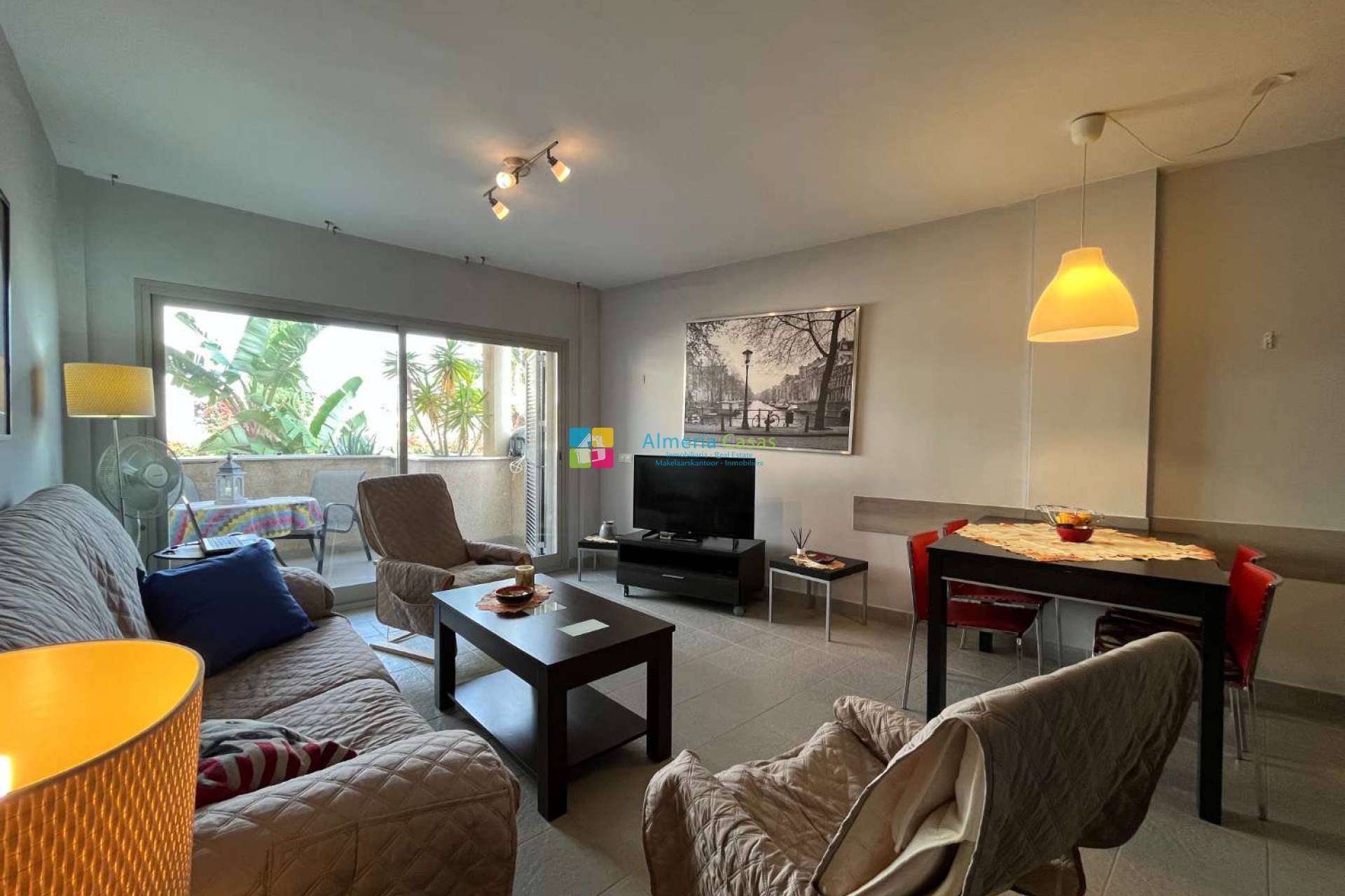 Vendu entièrement meublé avec climatisation centrale et chauffage, eau chaude individuelle, sols en céramique, double vitrage Climalit, menuiserie aluminium et porte renforcée.