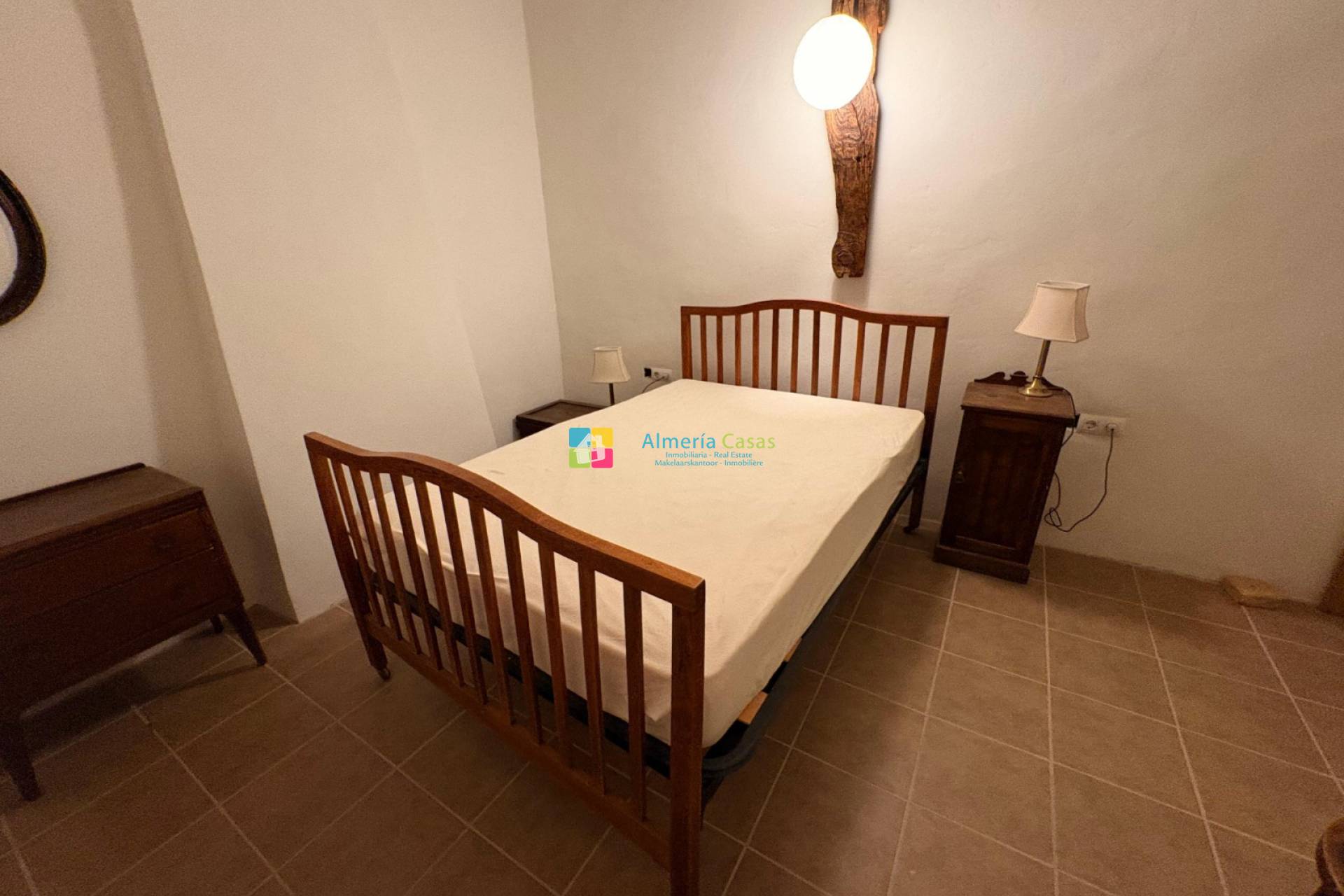 Le cortijo est situé au centre de son terrain, planté de chênes et d’amandiers, avec un système d’irrigation par récupération d’eaux grises, parfait pour un potager durable. La propriété est très privée tout en étant à distance de marche d’un village avec services de base et à moins de 20 minutes en voiture d’Oria. Service de bus scolaire disponible pour les familles.