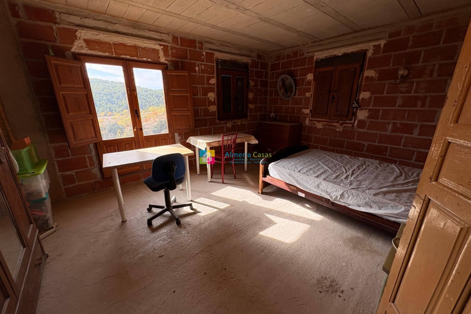 De nombreuses pièces sont déjà terminées, mais des travaux restent à réaliser pour achever cette maison et en faire un cortijo exceptionnel. L’eau provient d’un puits privé, l’électricité est connectée et la maison a été entièrement re-câblée.