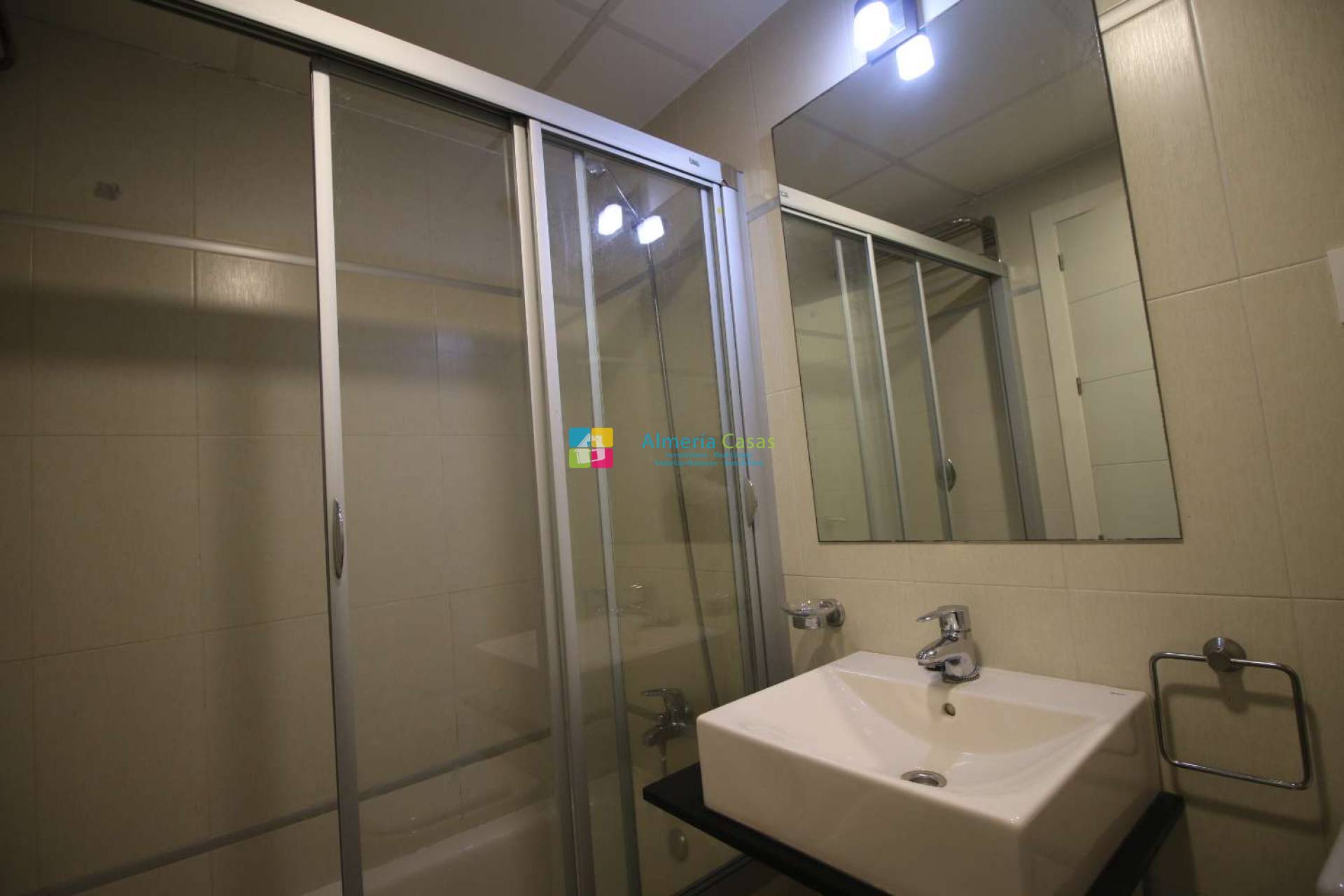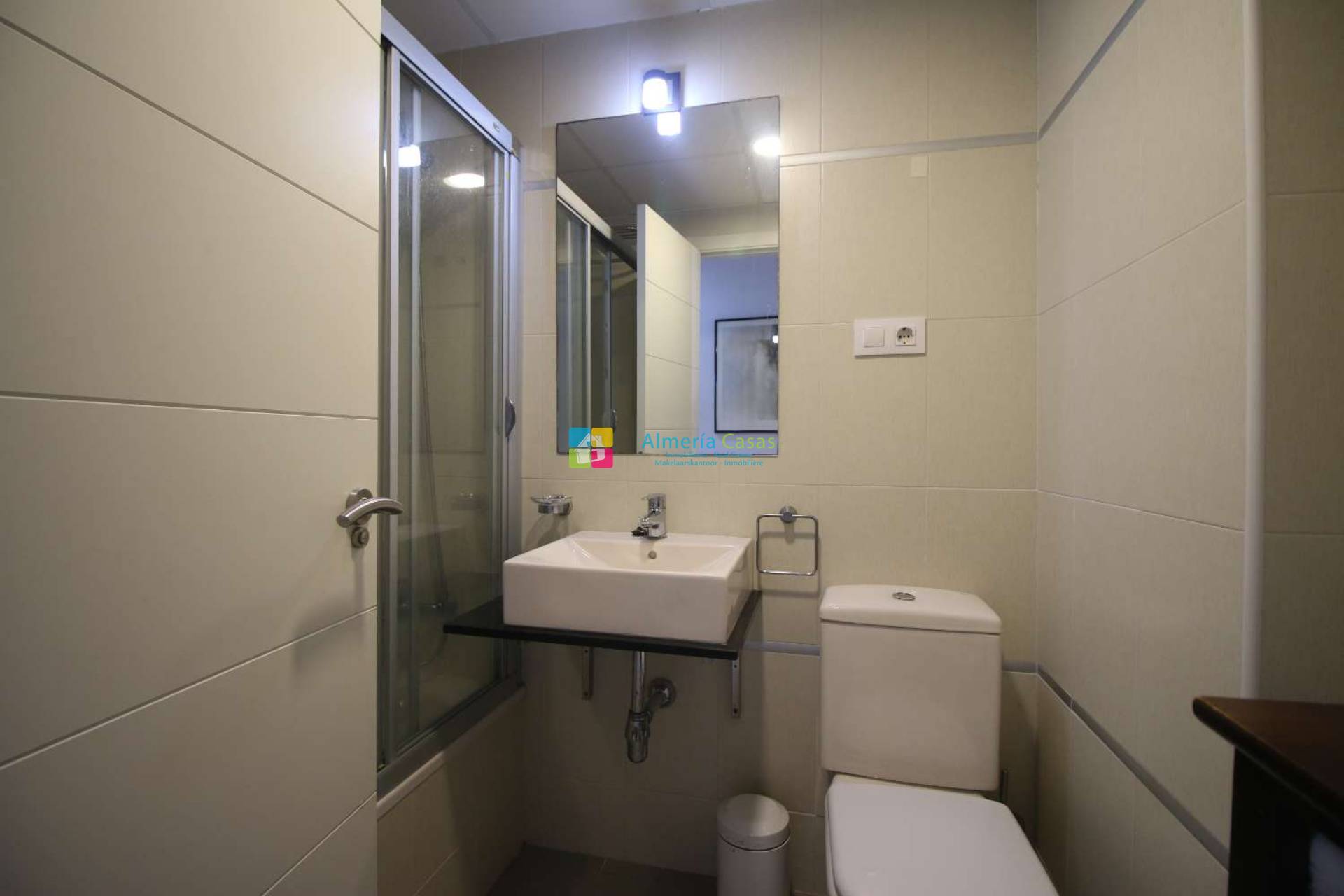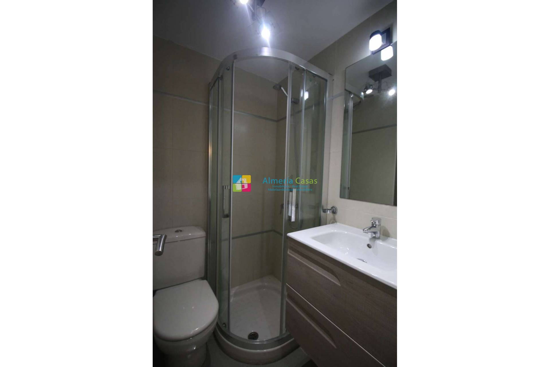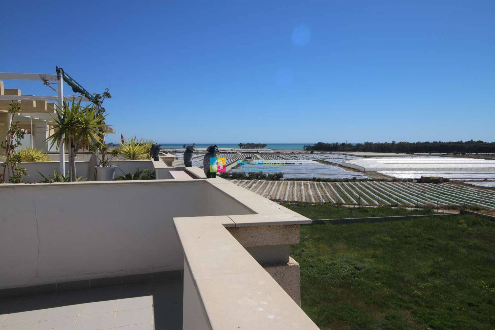 Ce penthouse, situé au premier étage, bénéficie d'une situation d'angle. Il comprend un vaste séjour/salle à manger, un accès à une terrasse donnant sur l'intérieur de la résidence, une cuisine entièrement équipée avec puits de lumière, une salle de bains complète, une salle d'eau, une suite parentale avec dressing et balcon, et une seconde chambre avec dressing. L'appartement dispose d'un escalier extérieur menant à un magnifique solarium de 65 m² offrant une vue imprenable sur la mer et la ville de Palomares. L'appartement est loué meublé et équipé de la climatisation réversible. Une place de parking en sous-sol est également incluse. Il se situe à 1,5 km de la plage et à 600 mètres du centre-ville.