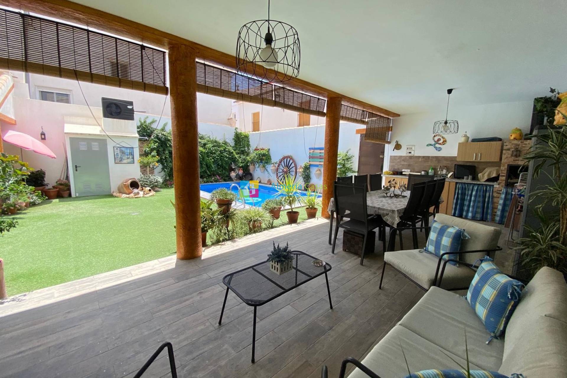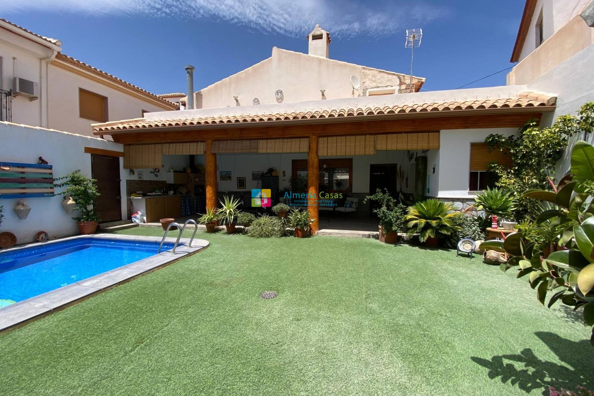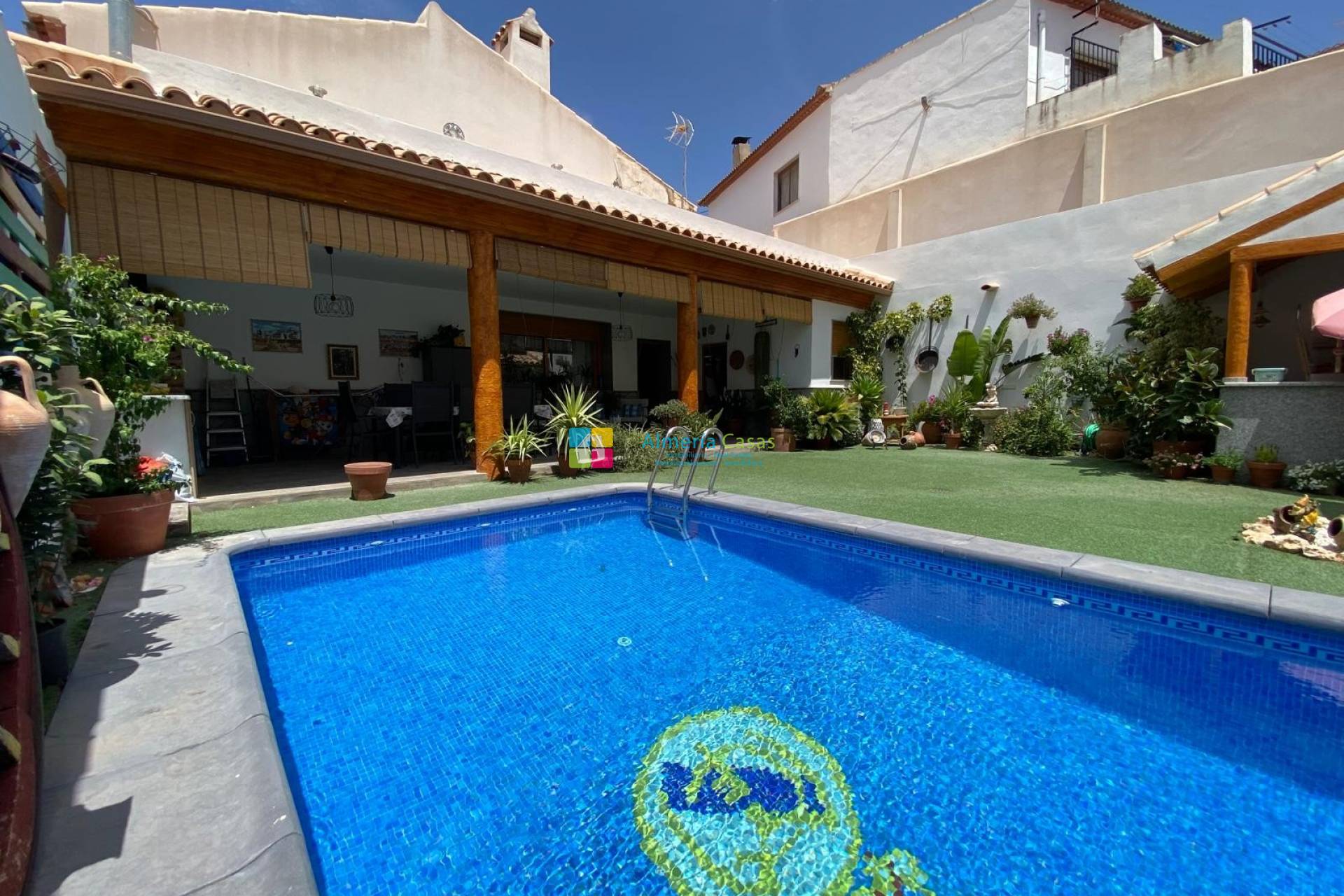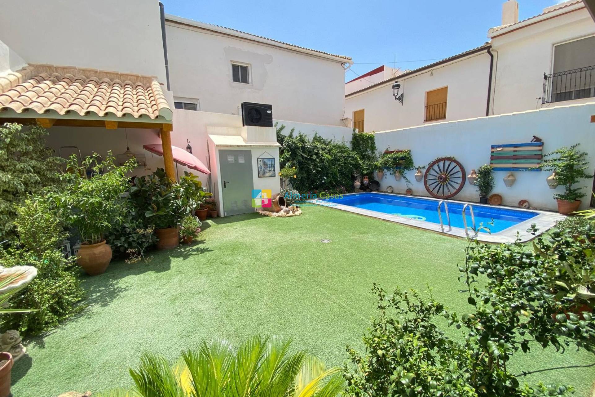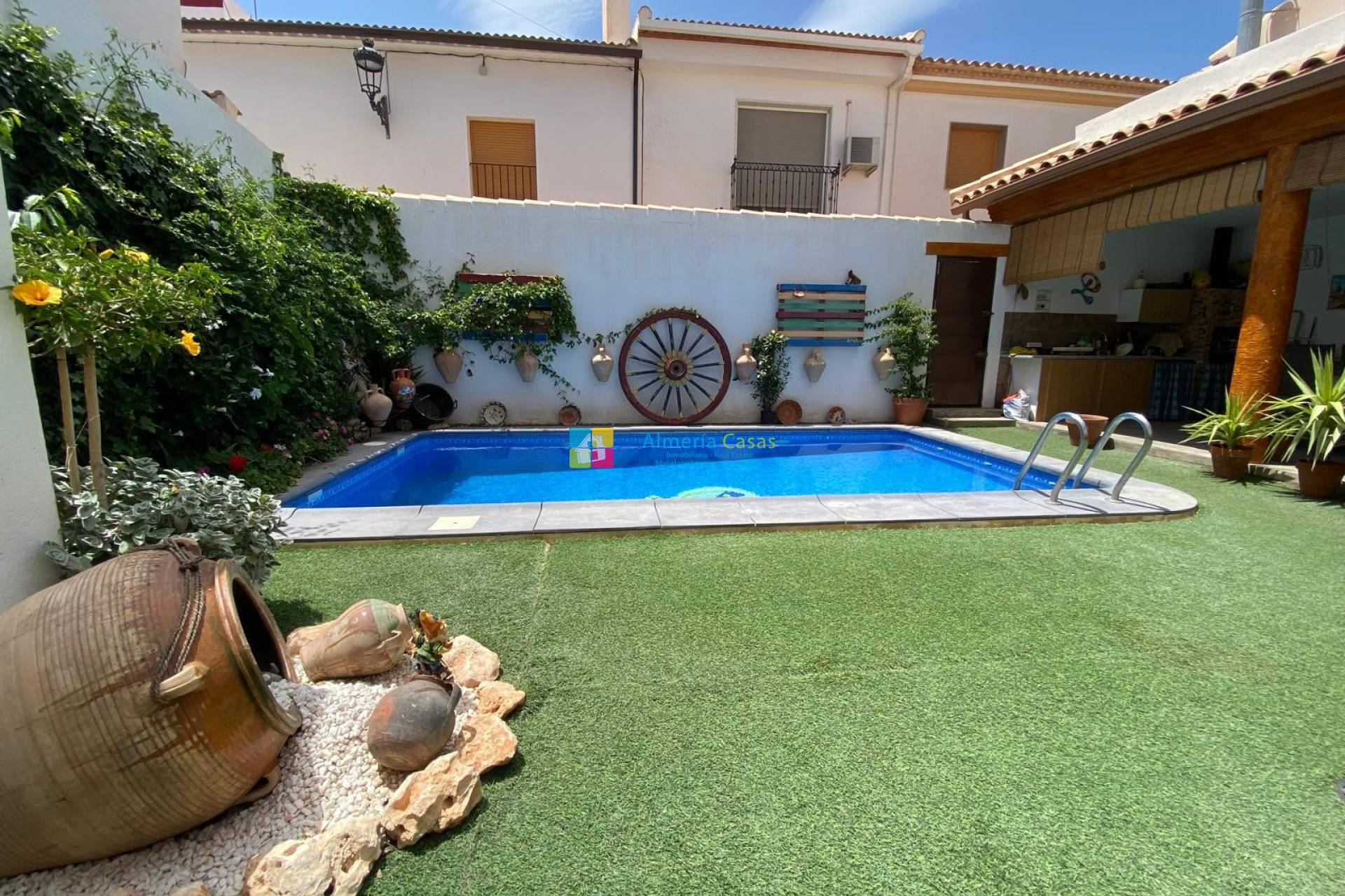 Een geweldige tweeverdiepingentellende, volledig gerenoveerde dorpswoning met 4 slaapkamers, 2 badkamers, tuin, verwarmd zwembad en garage te koop in Albanchez.