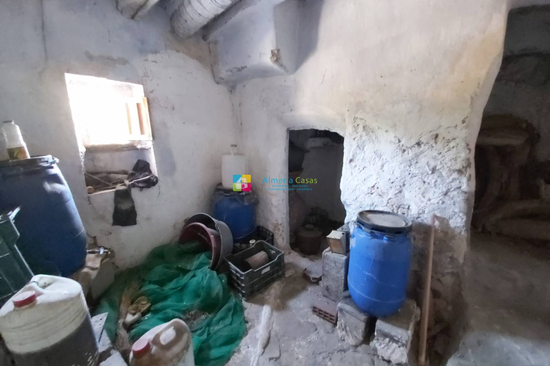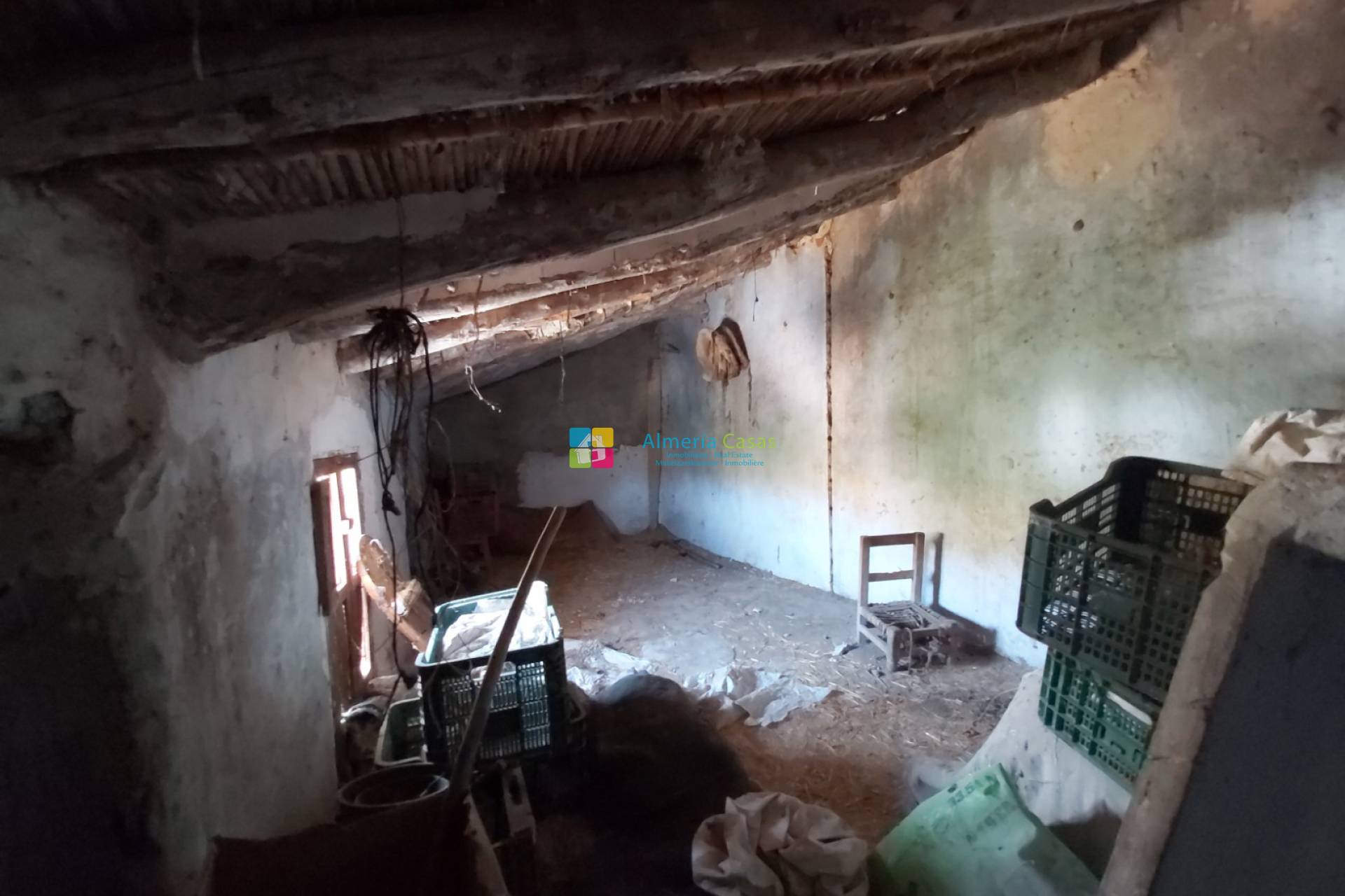The house has an authentic facade and the front door opens into a room with a fireplace, in addition there is another room. The stairs lead to the first floor where there are two large rooms that can be converted into more living space. The roof of this section has been renovated. Next to the house there is a separate, small house that used to be used as storage space, but this large space can also be converted into more living space.