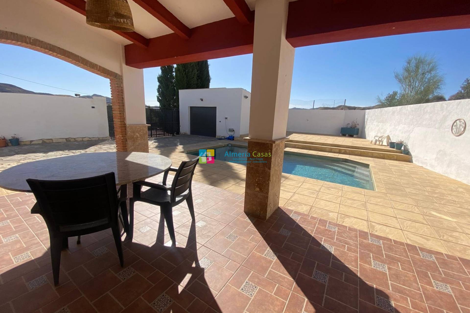 A beautifully presented villa located just five minutes from the traditional Spanish village of Cantoria, where you'll find a post office, shops, medical centre, as well as a selection of bars and restaurants. The larger town of Albox is only ten minutes away by car and offers all major supermarkets, a sports centre, medical facilities, and a wide variety of restaurants and bars with year-round entertainment. The stunning beaches of Almería are just a 45-minute drive away.