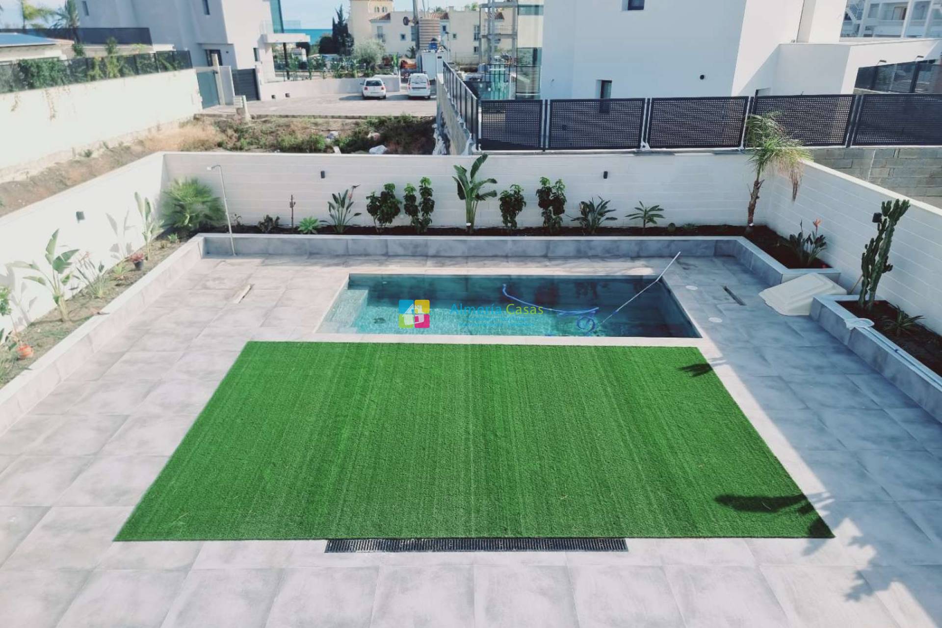 This beautiful contemporary style villa was built in 2023 on a 465m² plot and has 155.83m² built spread over two floors. It has three bedrooms, three bathrooms and a private pool, making it an ideal option for those looking to enjoy life on the coast.