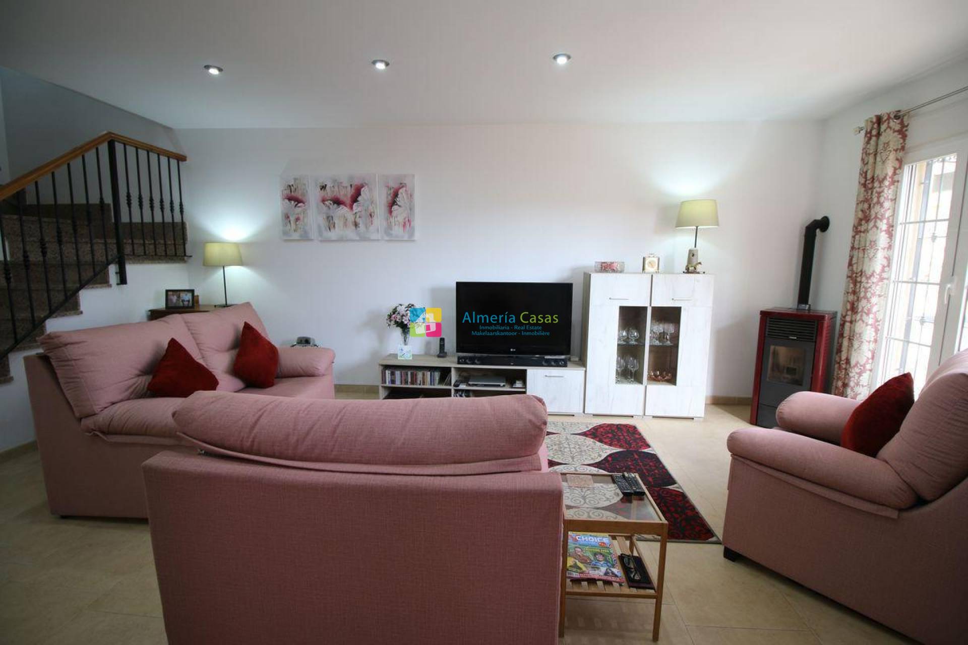 La maison dispose d'un poêle à granulés, d'une pré-installation de la climatisation, de moustiquaires aux fenêtres, d'armoires encastrées et sera meublée à 50%.