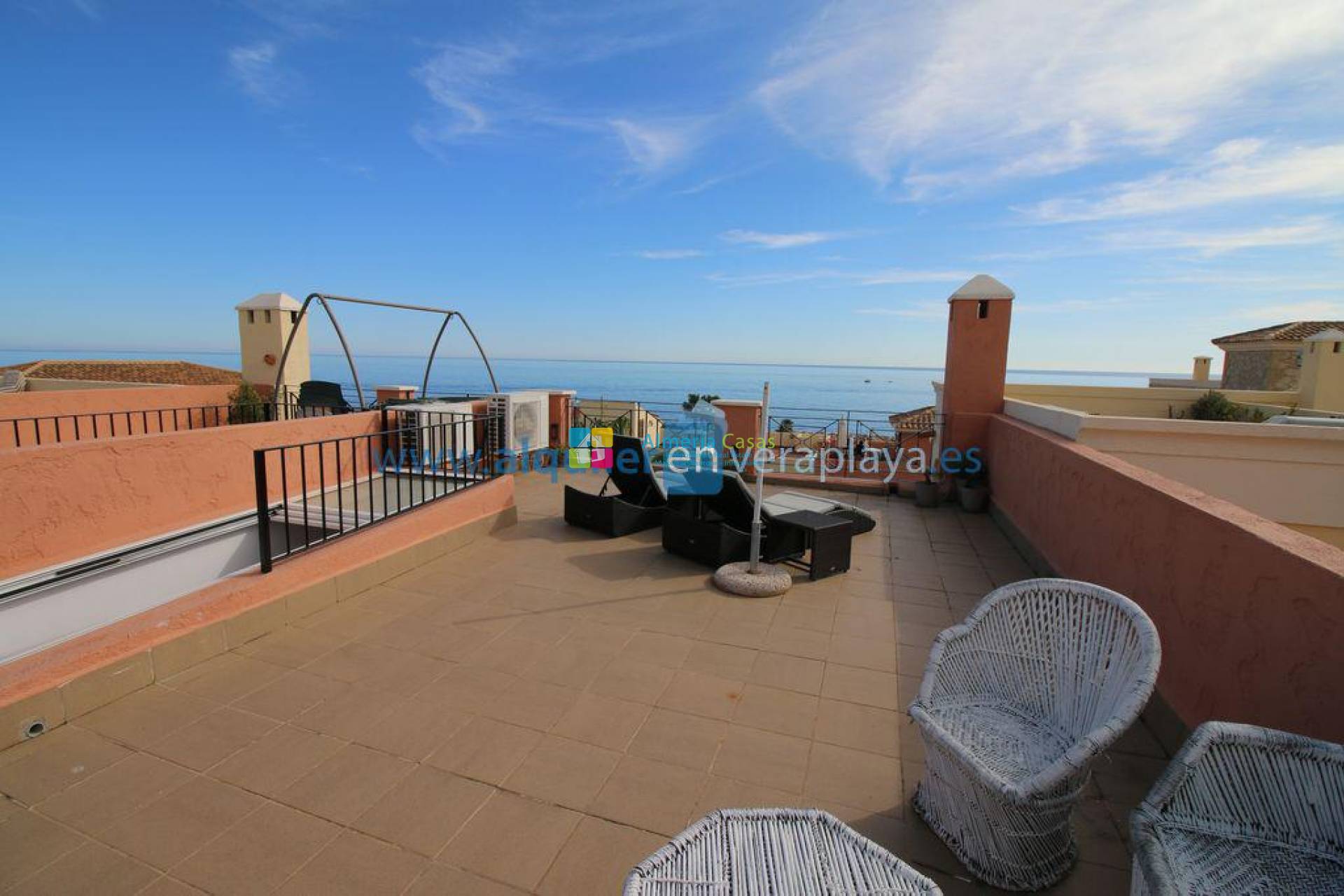 This stunning duplex located in the Harbour Light urbanization in Villaricos starts on the first floor and offers breathtaking sea views. On the main floor, there is a spacious living-dining room with fireplace, fully equipped kitchen, and a terrace facing the sea, perfect for relaxing or entertaining. The upper floor includes a secondary bedroom with built-in wardrobe, a guest toilet, and the master bedroom with en-suite bathroom, built-in wardrobes, and a private terrace with sea views. The duplex continues with a 50 m² solarium on the top floor, ideal for sunbathing and enjoying panoramic views of the sea.