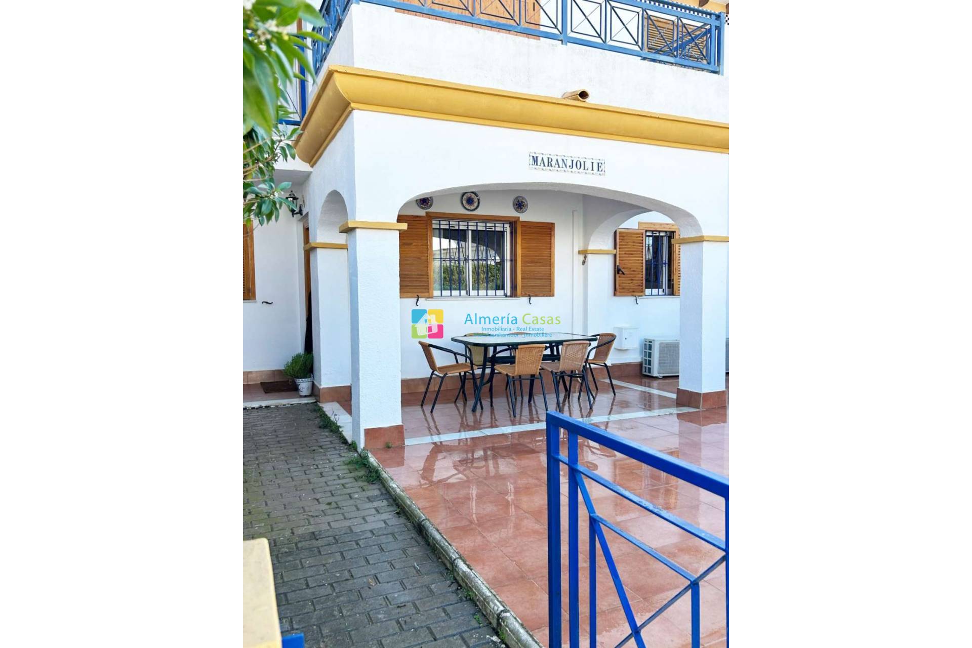 Partly covered and partly uncovered terrace with terrace furniture
