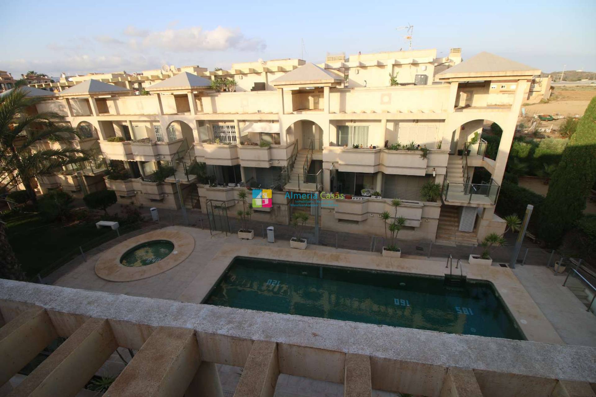 This lovely ground-floor corner apartment is located in the Playa Azul urbanization in Palomares, just 1.5 km from the beach. With 68 m² built, the property offers 2 bedrooms with built-in wardrobes, 2 full bathrooms, a spacious living-dining room, independent equipped kitchen, terrace and private patio, as well as private underground parking and a community parking space. The apartment is sold furnished and features communal pool and gardens, central air conditioning and heating, individual hot water, intercom, and daytime concierge service. Security is ensured with reinforced doors and safety locks, while finishes include ceramic flooring, Climalit double glazing, and aluminum carpentry. Perfect for enjoying the tranquility of the urbanization and proximity to the sea, this apartment combines functionality, comfort, and natural light.