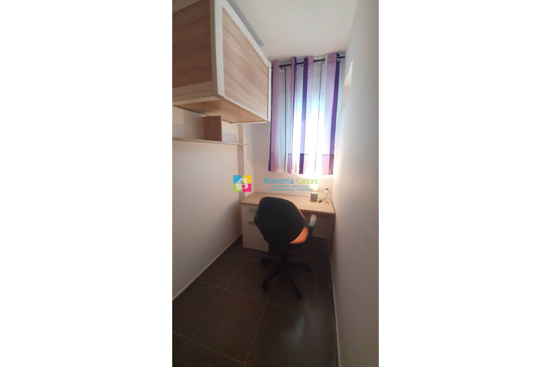 The apartment is located overlooking the Recinto Ferial of Albox with views beyond to the town and mountains. The front door opens into a small hallway with directly ahead the living room. This is a bright room with a feature bar area constructed at the rear. Patio doors open onto the balcony which runs the length of the apartment and opens out into a good sized terrace area, with ample space for relaxing and even for a hot tub.